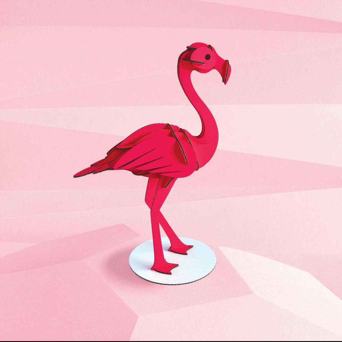 シンプルなパーツを組み立てるだけで、立体的でかわいいフラミンゴが完成!
