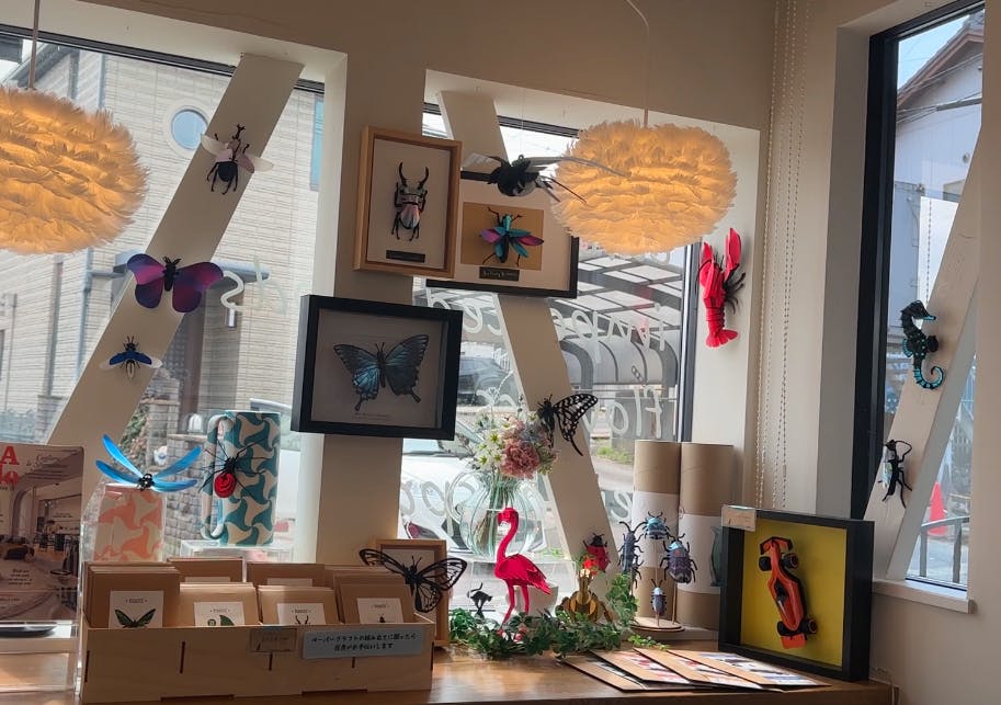 現在、愛知県知多市の「プチブレットカフェ」では、Assembliのペーパークラフトを展示・販売中です。