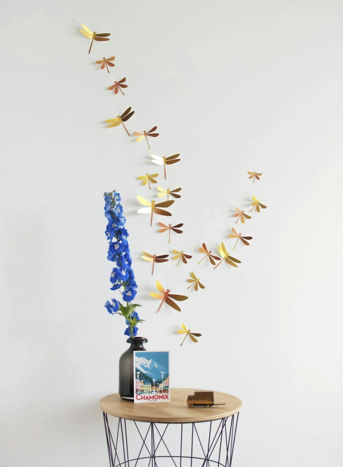 たとえば、蝶の群生を壁にふわっと広げたり、空間に合わせてトンボがふわりと舞うように飾ったり。