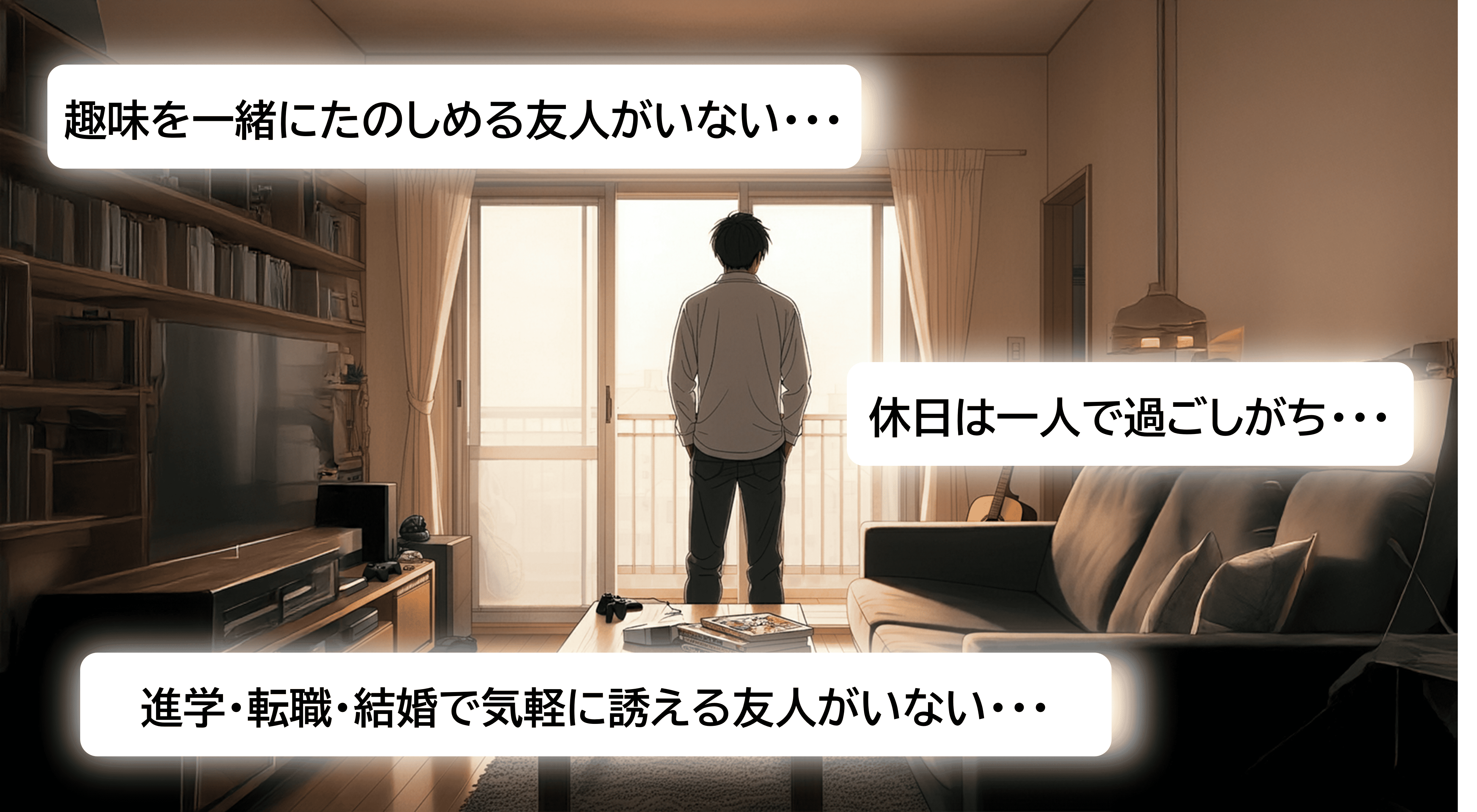 しかし、それでも若年層や壮年層の孤独が解消されているとは言えません。実際、データ上でも孤独感を抱えるのはこの世代が多く、趣味を一緒に楽しむ友人がいないと感じる人も増えています。私自身も、社会人になってから趣味を共有できる友人を作る難しさを感じています。進学や就職により新しい土地で人間関係をゼロから築く人が多く、地縁や血縁の希薄化が孤独感をより一層深めているのではないでしょうか。