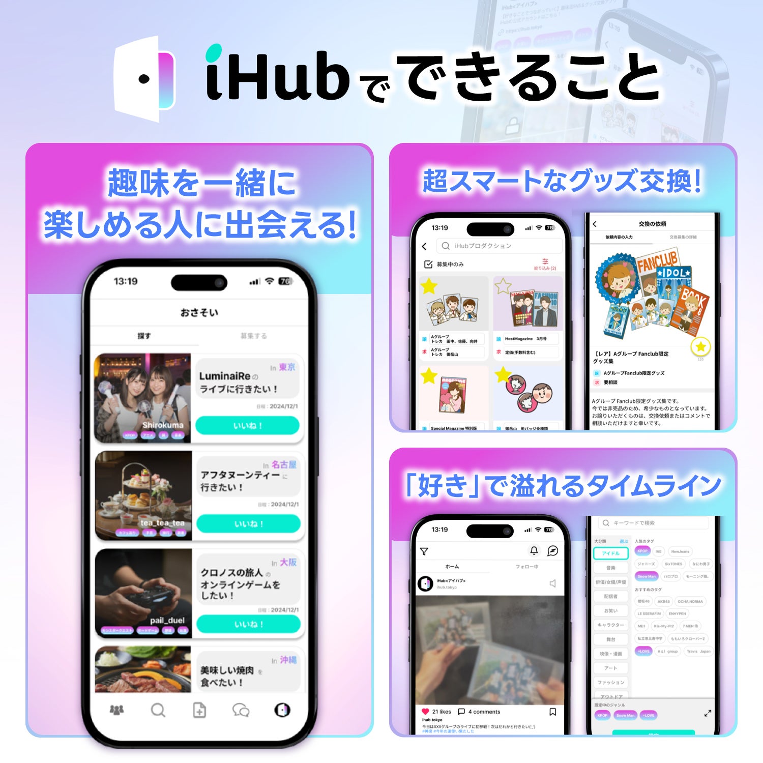 『iHub』は、趣味や「好き」を通じて日常が少しずつ楽しくなるきっかけを提供します。