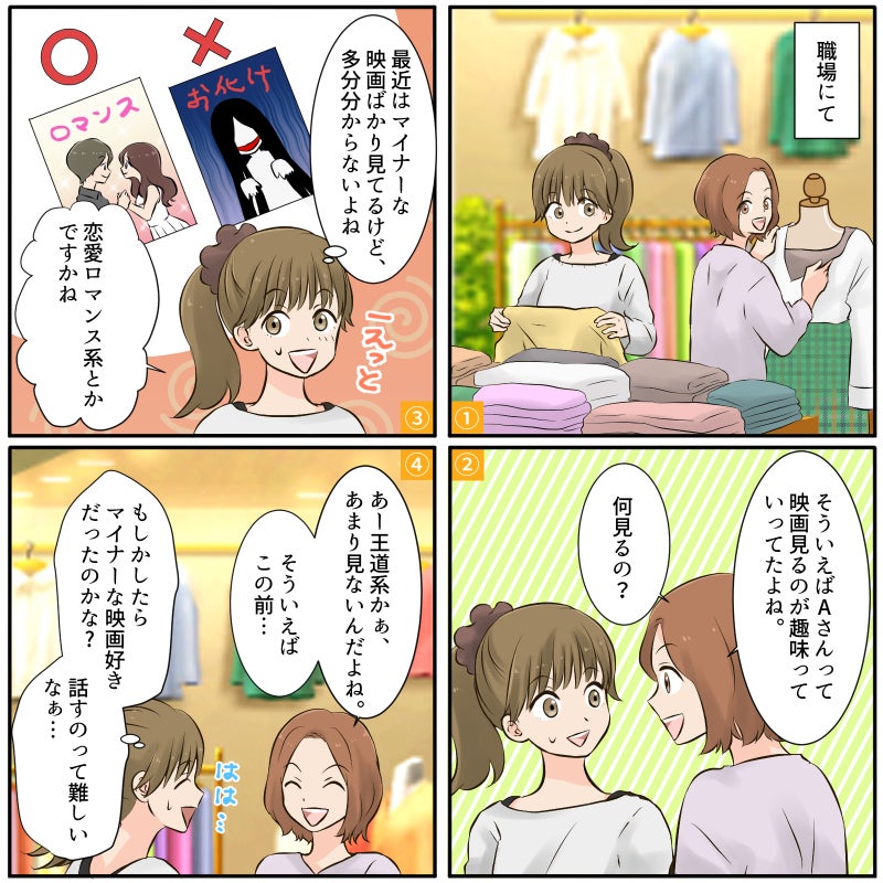 一方で、共通の話題で会話することが難しくなったことも事実でしょう。昔は「昨日の金曜ロードショー見た?面白かったよね」という風に、共通の話題で簡単に盛り上がることができました。一方、今の時代ならどうでしょうか。「どんな映画見るの?」というような切り口から始まるのではないでしょうか。会話が続くように、とりあえず「王道系の映画を見るよ~」という人もいれば、一か八かで、本当に好きな作品を答える人もいるでしょう。どちらにせよ、共通の話題で盛り上がるのは昔と比べて難しくなりました。