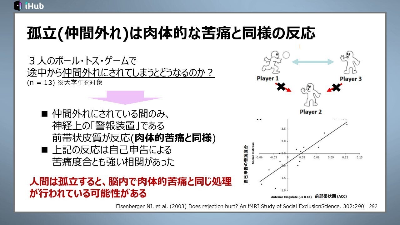 突然ですが、「孤立は肉体的な苦痛と同様の反応である」ことをご存じでしょうか?(*0)