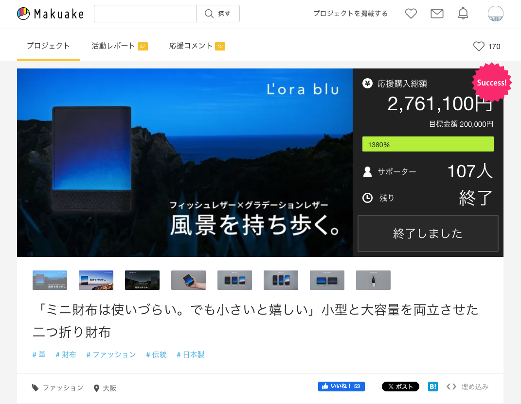 残念ながら今回のアイテムが、お眼鏡にかなわず「ご支援」まで至らなくても、「こんなプロジェクトがあるんだよ」「こんな財布があったよ」「こんなブランドがあるんだよ」とSNSなどで、拡散してただけると幸いです。