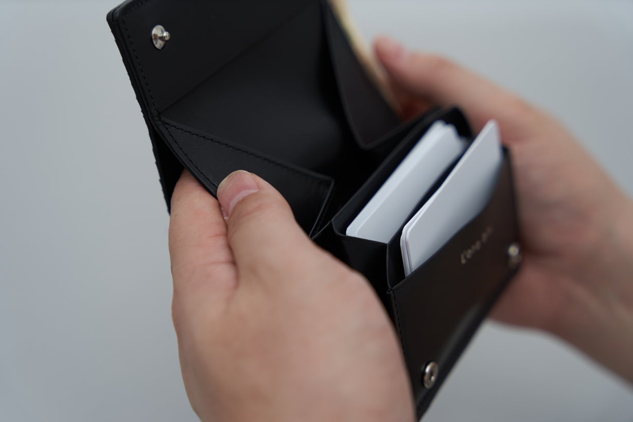 「小ささを求めつつ、使い勝手も良い財布がないか?」と考え、たどり着いたのが「コンパクト二つ折り」です。