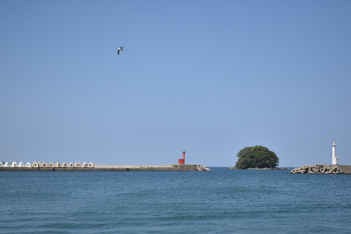 水平線付近はほんのり明るく、空は星を讃えるほど暗い。