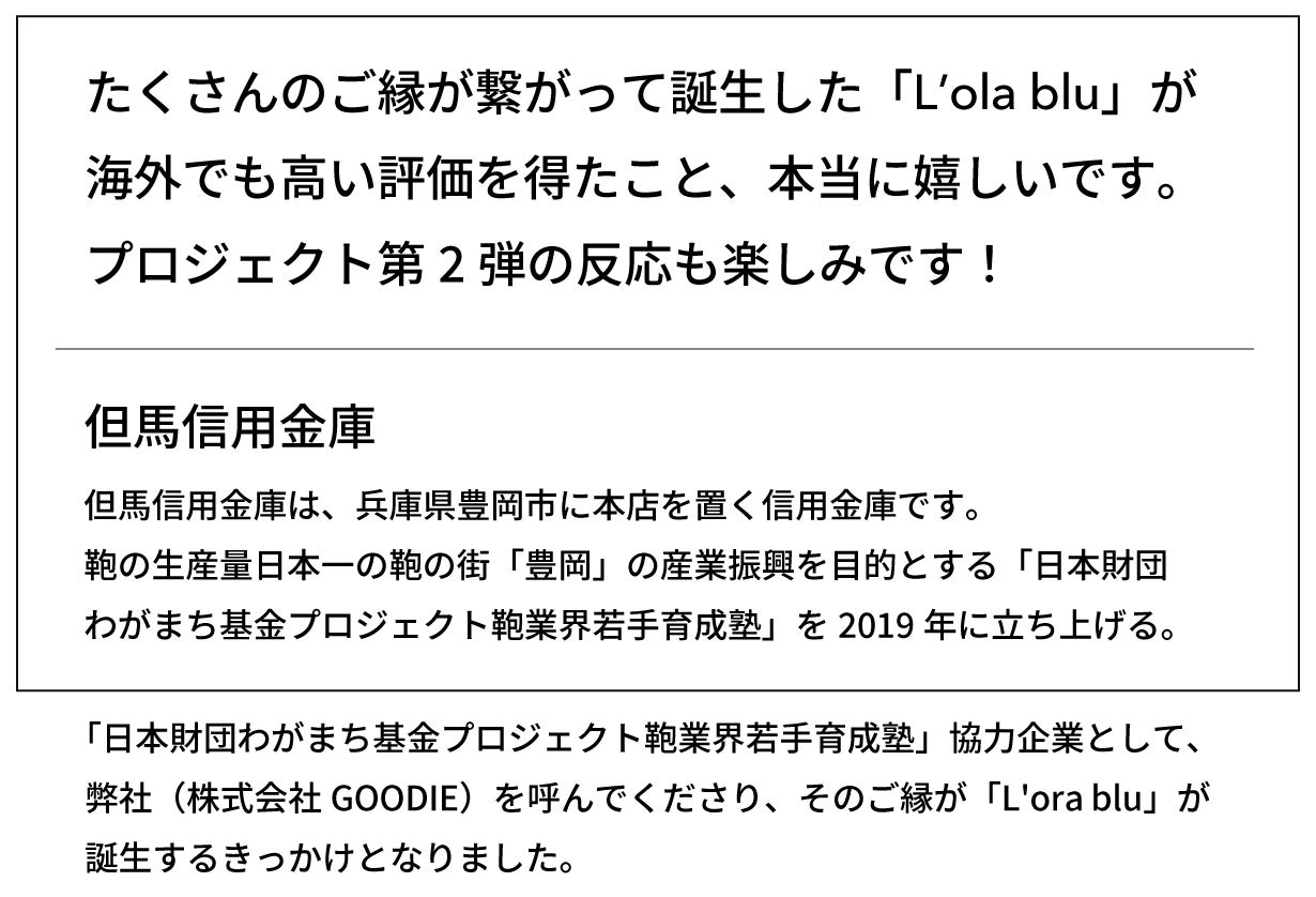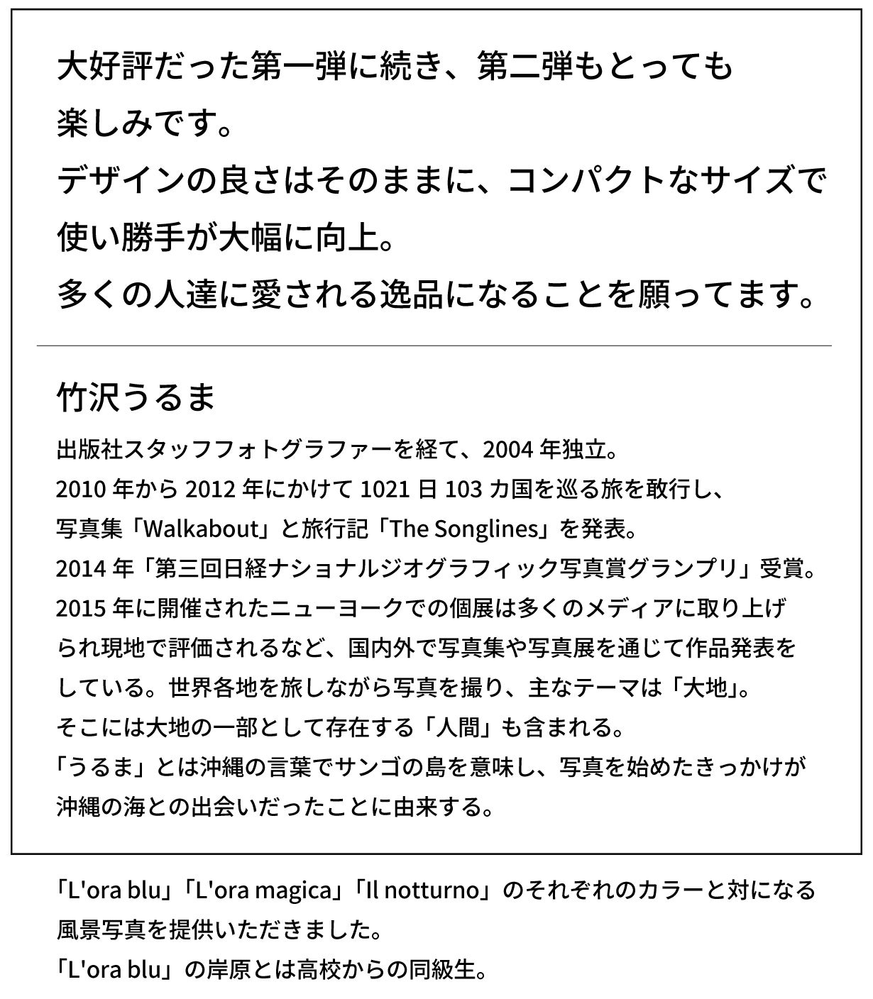 たくさんのご縁に感謝すると共に、「L'ora blu」の誕生から第二弾アイテムリリースまで尽力いただいた方々に感謝いたします。