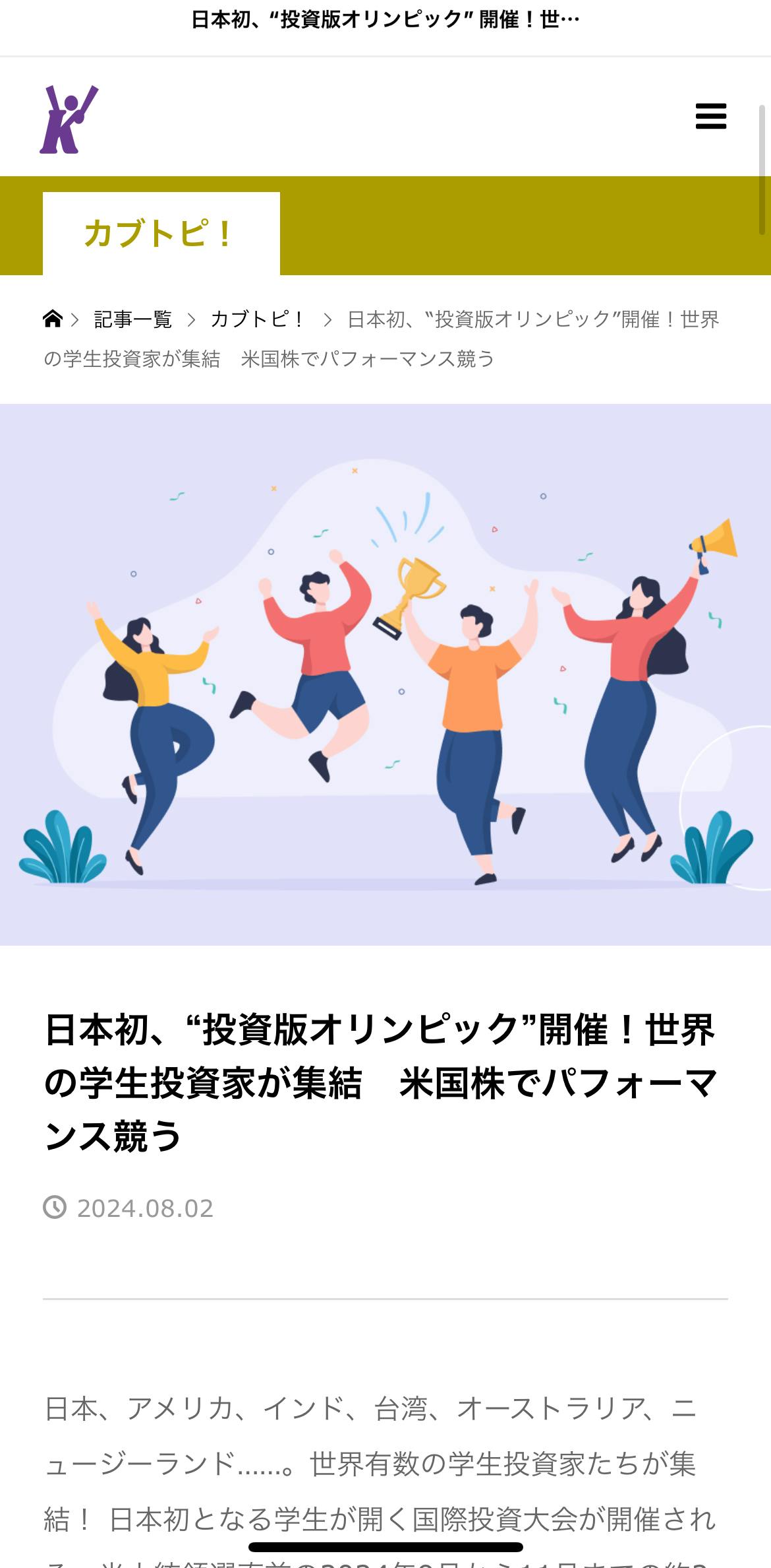 ニュースサイト、カブライブ様に我々の活動が取り上げられました!!
