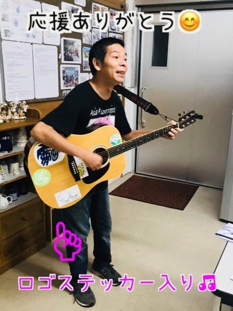 いけやんも張り切って、ロゴ入りのギターで歌いました。