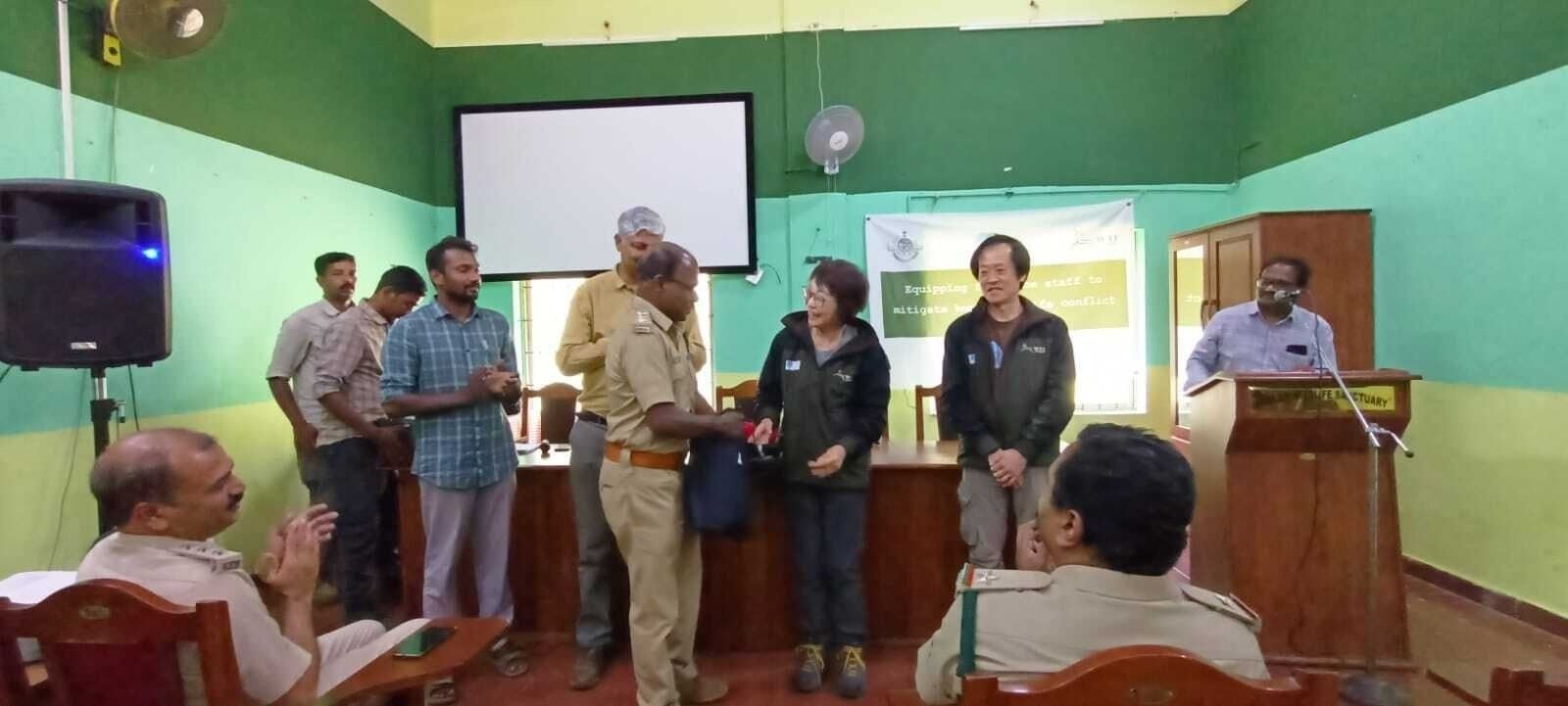 インドの行政組織である森林局は、森林保護の役目の一環として、トラ・ゾウの出没状況を監視し、村や農地への出現の際には追い払いを行っています。しかし、森林局の職員は必ずしもトラ・ゾウの専門家ではありません。そこで、私たちは、現地パートナーWTIによる2つのワークショップをマハラシュトラ州 ガッチロリ県で実施することにしました。ひとつは、ゾウの移動を把握して被害防止に備えるためのモニタリング技術の訓練を行うものです。もうひとつは、その成果に基づき、現地の事情に沿ったゾウとの衝突回避策の手順を示すガイドライン作成を行うものです。
