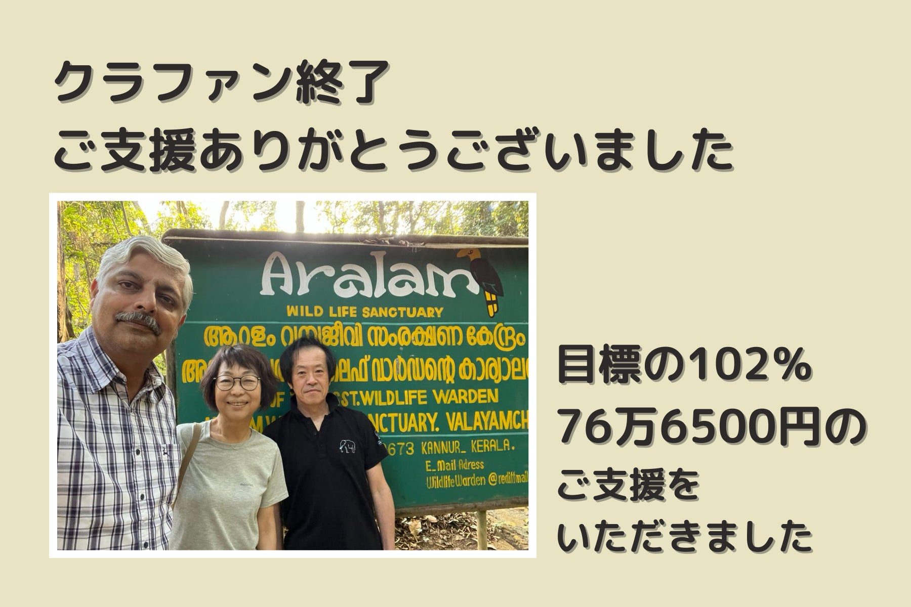 2024/09/02 08:538月31日をもちましてクラウドファンディング無事終了しました。目標金額を超え、92名の方より総額76万6500円をご支援いただきました。これまでの応援ご支援に心より感謝いたします。野生のトラとゾウが、人と共存する未来に一歩近づくことができます。プロジェクトの進捗については、こちらでも報告いたしますので、ぜひ今後ともよろしくお願い申し上げます。 もっと見る