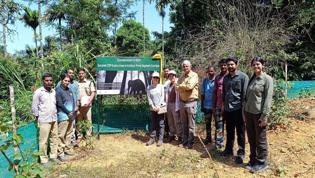 2024年2月、ケララ州のプロジェクト実施場所を視察(戸川、坂元、WTIの現地・本部スタッフ。右から2番目はWTI代表のビベック・メノン氏)