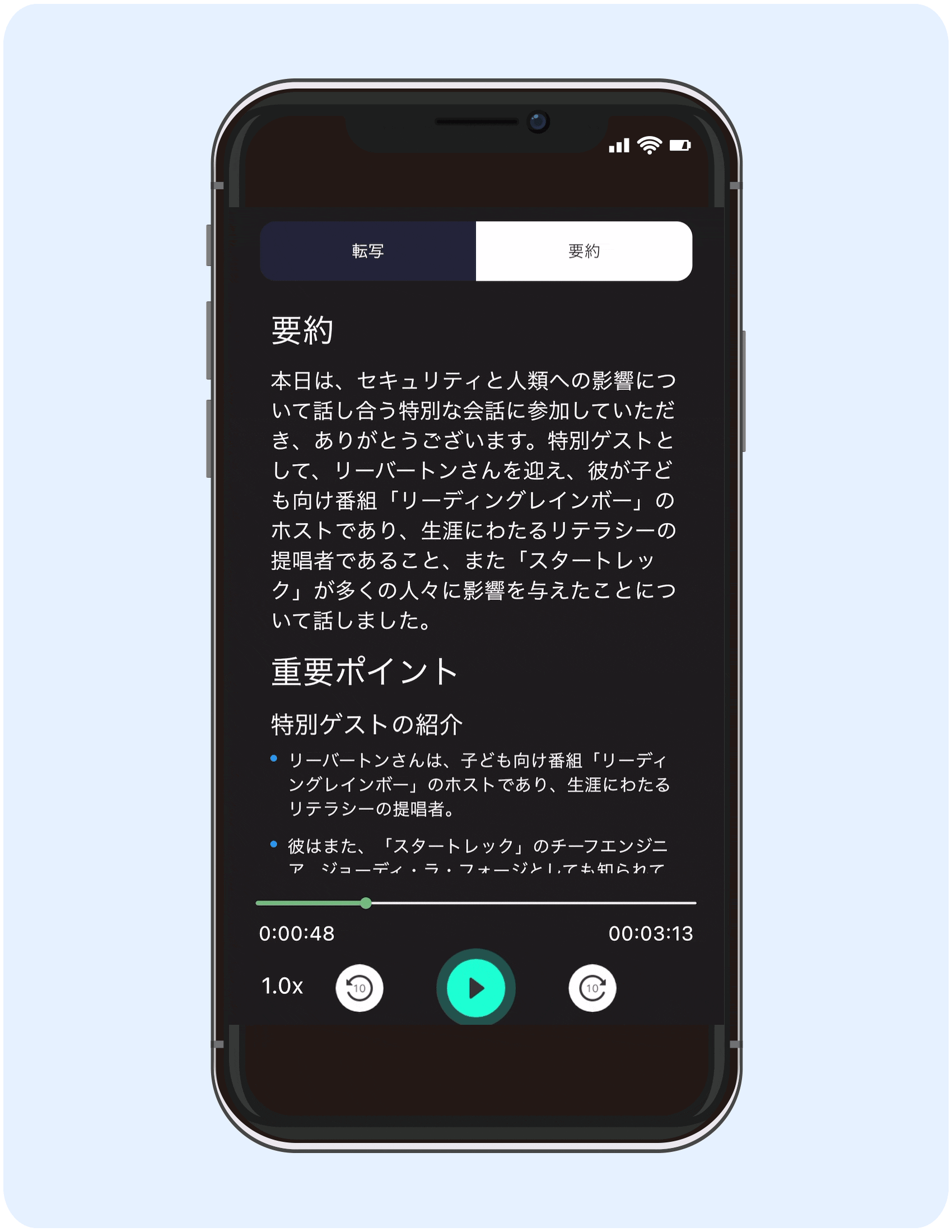 A:記録が許可されている限り、アプリを通じて文字起こししたり要約したりすることができます。