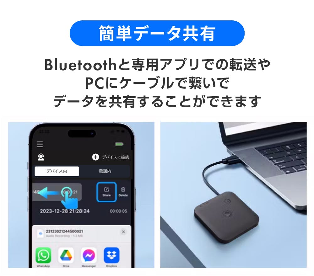 長文失礼します。 ボイスレコーダーをBultooth でスマホと常時接続していれば、録音終了後直ちにアプリにアップデートされるのでしょうか? また録音された音声は本体メモリとアプリのどちらかに保存されるという事ですか? Google CloudなどのCloud 上に保存されたりはしませんか?
