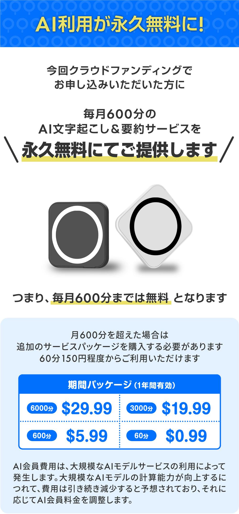 ※ 追加の会員費用につきまして:こちらがAIサービスのコストに関するもののみで、録音は永久無料で時間制限はございません。
