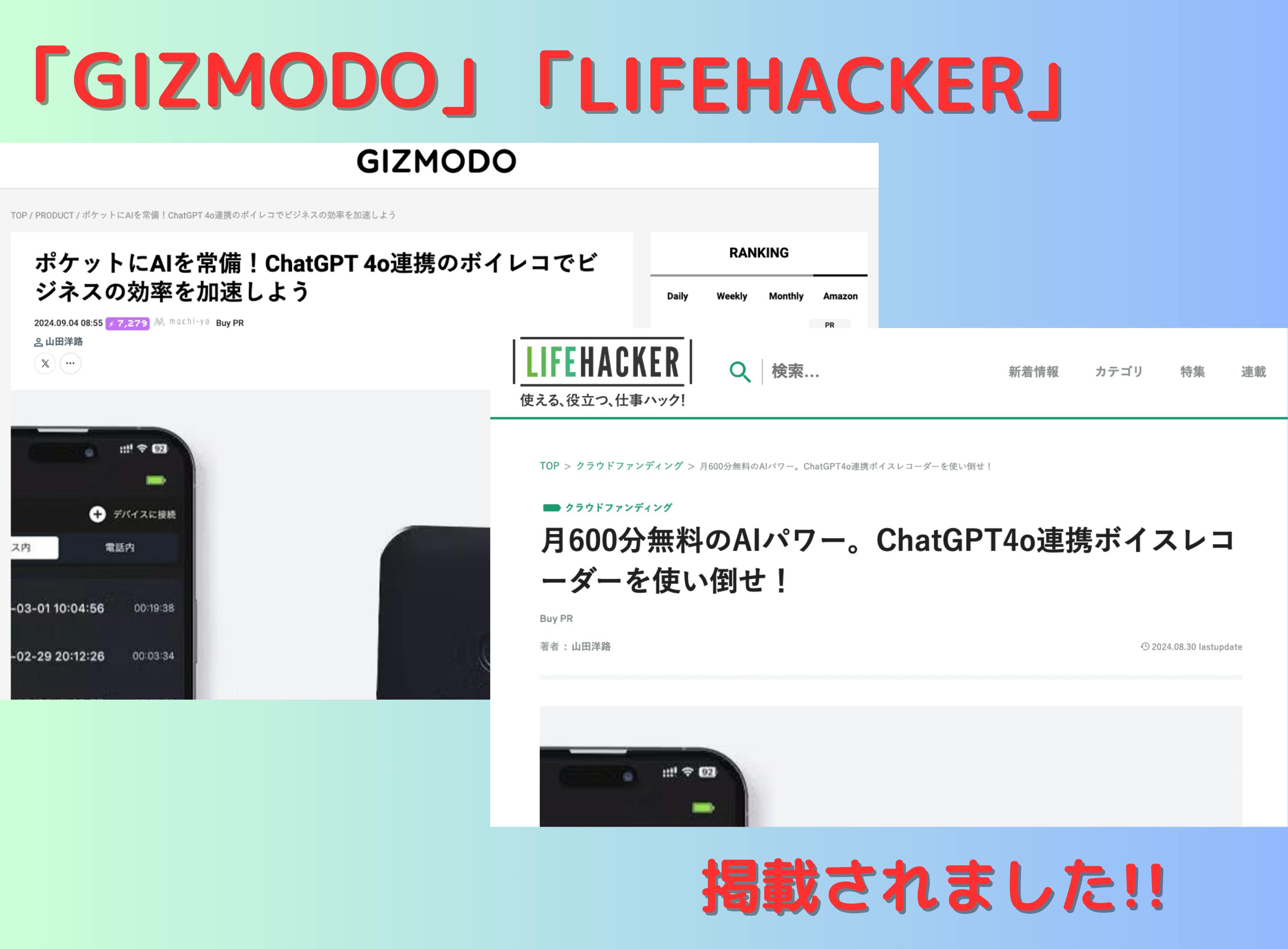 【注目!】「GIZMODO」と「LIFEHACKER」に掲載されました!