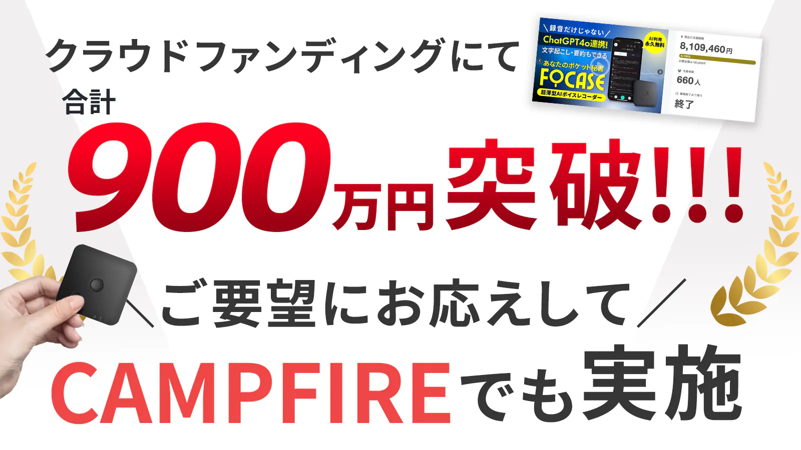 ついに本日、「FoCase」超薄型AIボイスレコーダーのアンコールプロジェクトがCAMPFIREでスタートしました!