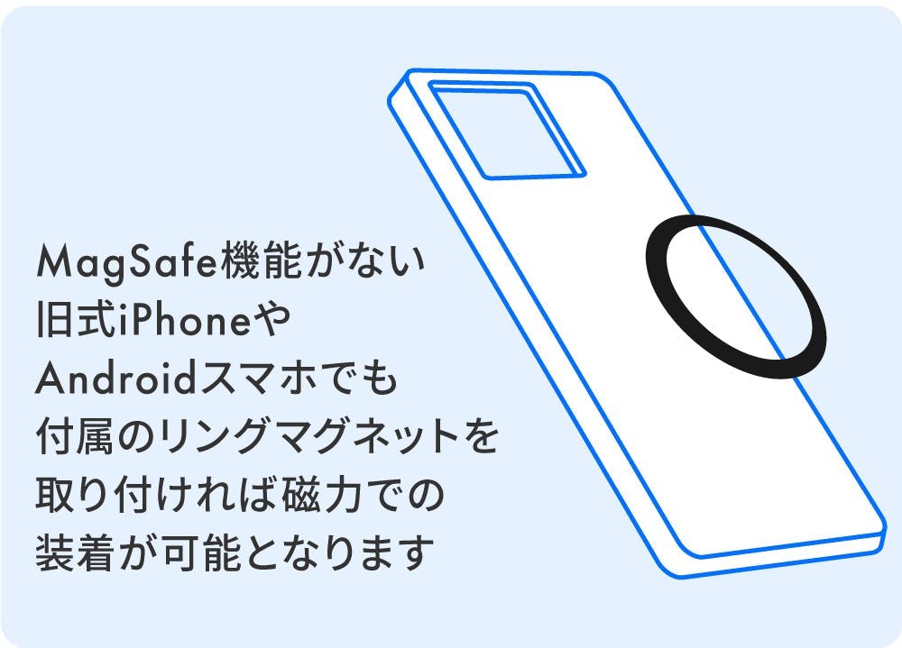 その他のiPhoneやAndroid機種では、マグネット機能を有効にするためのマグネットリングアタッチメントが提供されています。