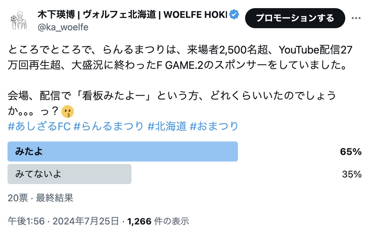 一方、自身のXアカウントのフォロワー数とあしざるFCがXを主戦場としていないこともあり、今のところ露出効果としては「めちゃめちゃ良かった!」という結果にはなっていません。