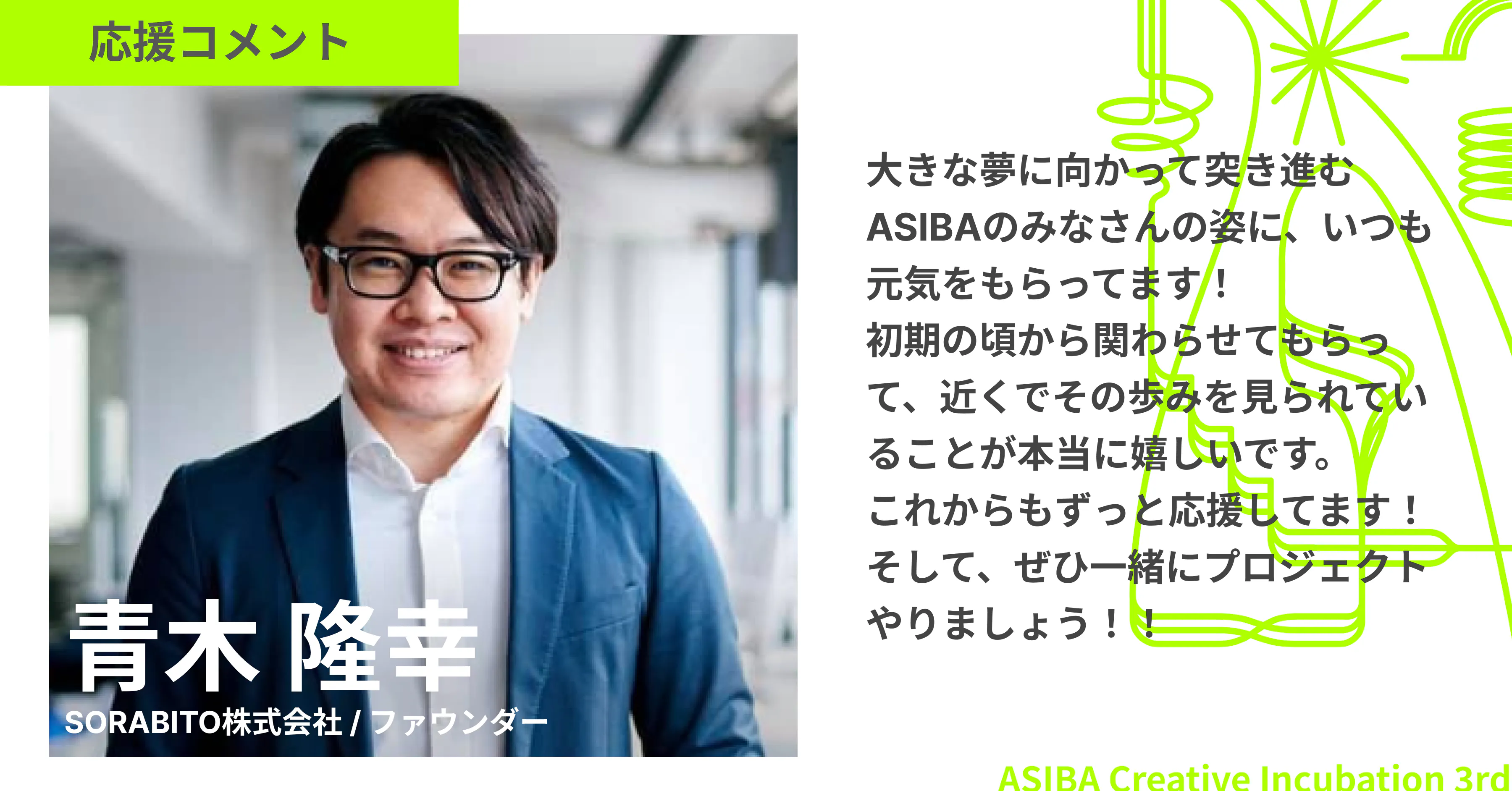 【応援コメントが届きました!】SORABITO株式会社 / ファウンダー・青木 隆幸さん