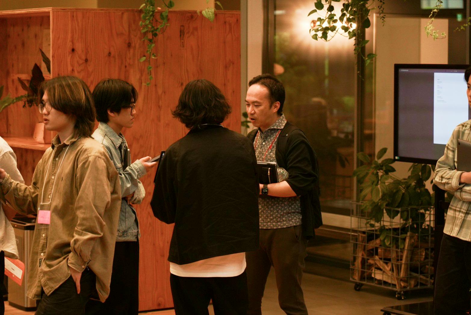 入場前のエントランスでは、直前までプレゼンテーションの準備に励むメンバーたちの姿が見られました。