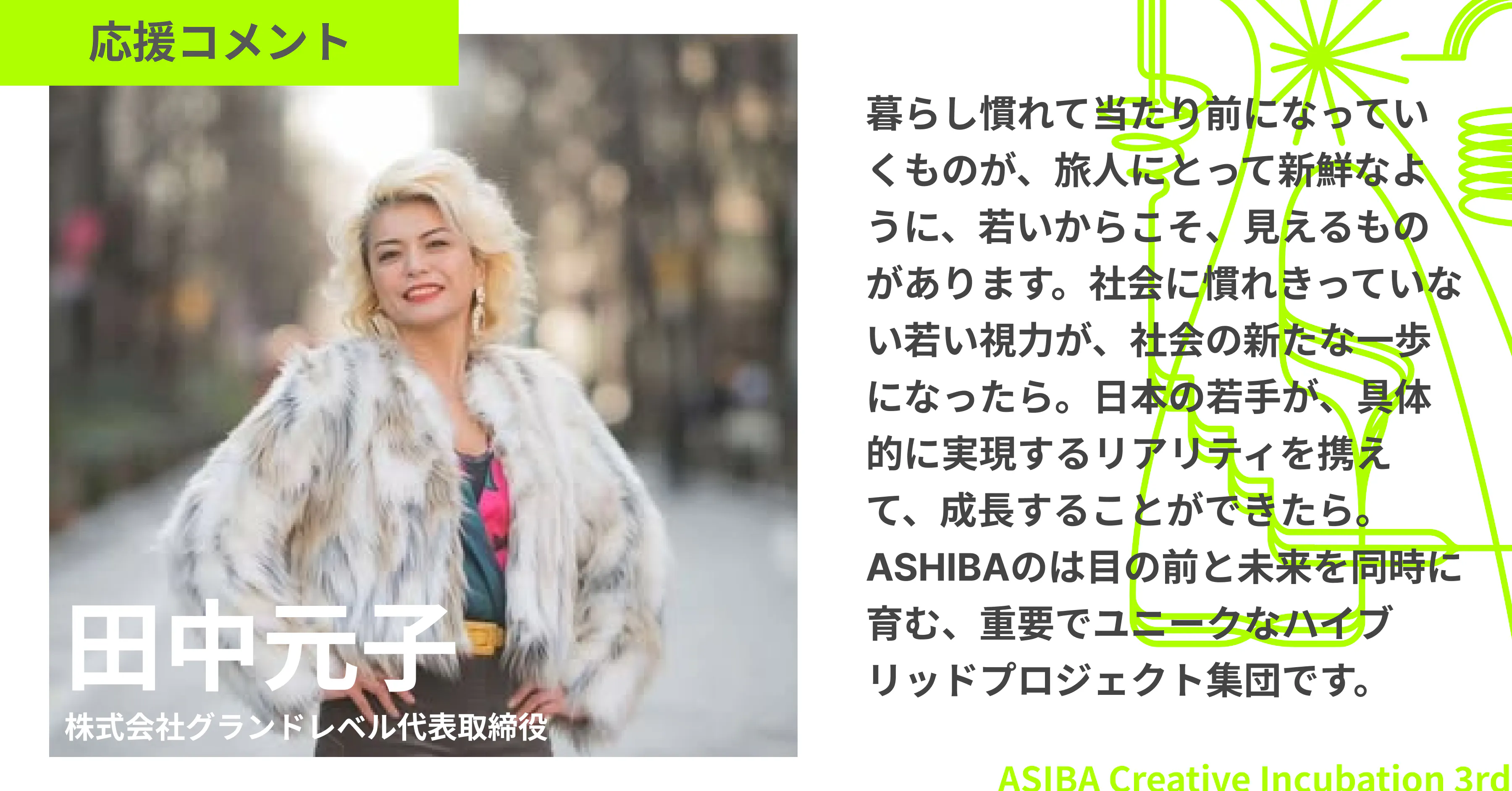 ASIBA Creative Challenge 2025で伴走メンターを務めていただいた、田中元子さんから、応援コメントが届きました!