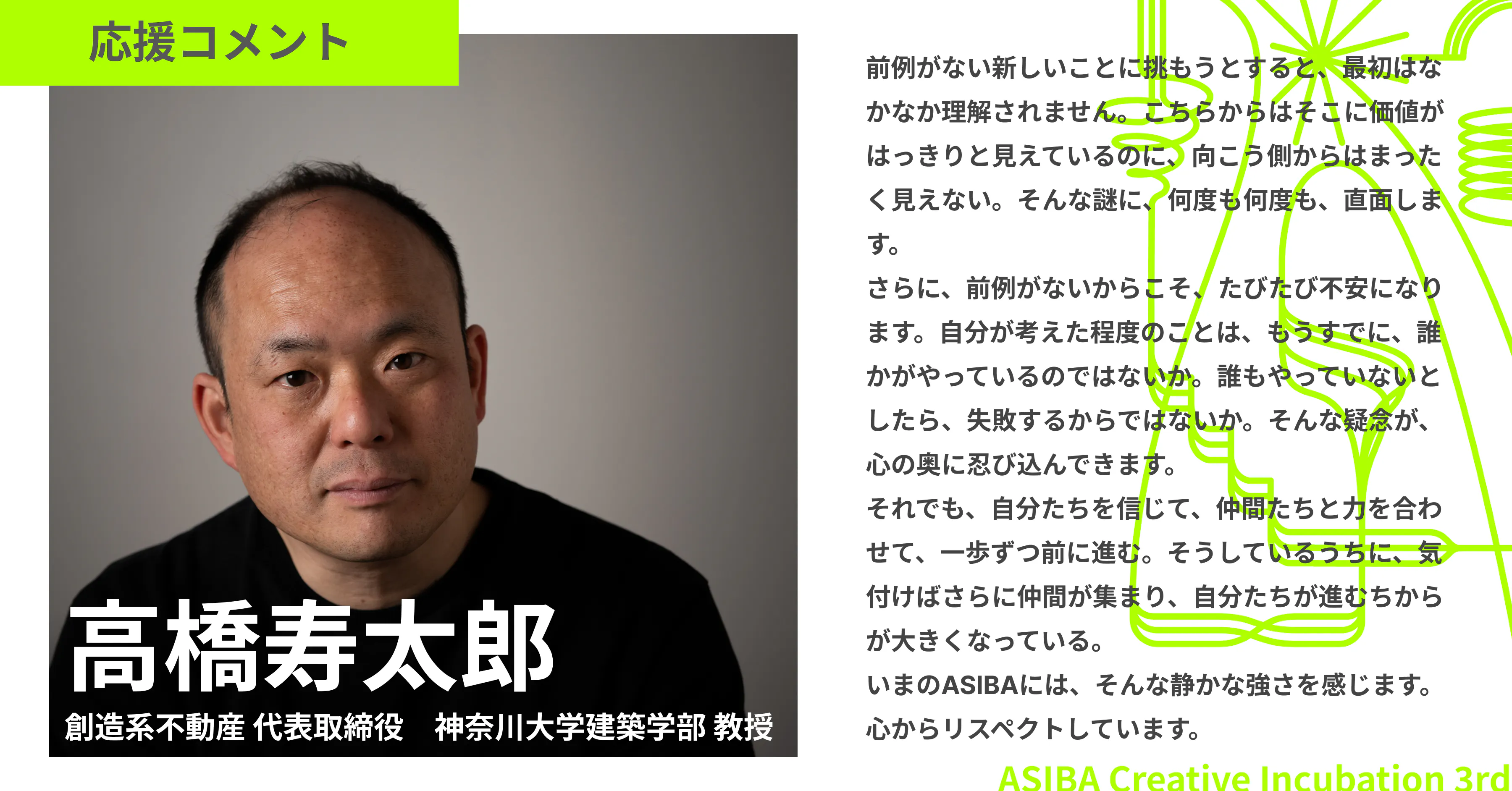 ご相談に乗っていただいたり、あいだけんの連携などでお世話になっている高橋寿太郎さんから、応援コメントが届きました!