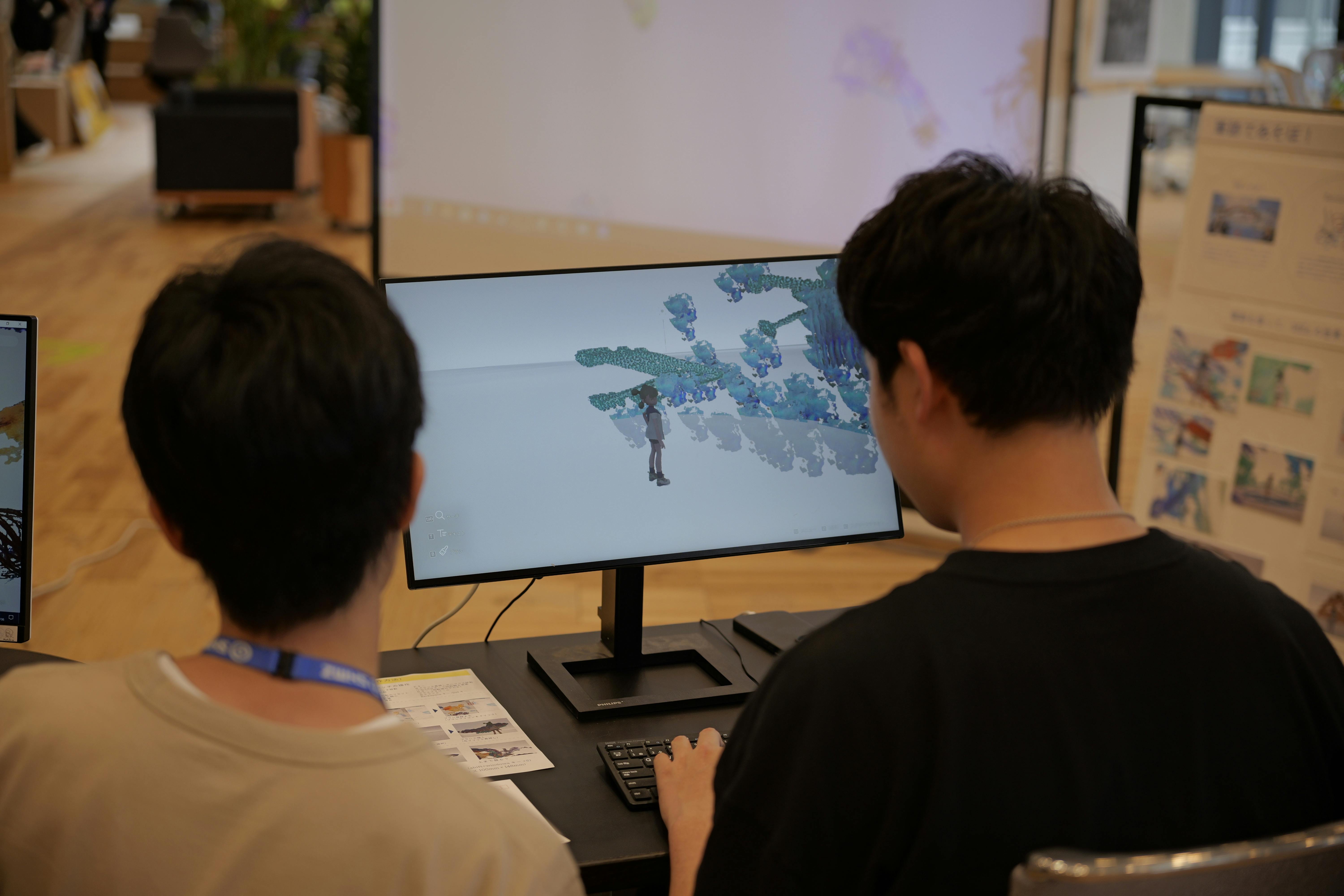 最終発表イベント『ASIBA FES 2024」では、2期生 EnoniwaとMEsのコラボレーションも!来場者が自由に筆跡を三次元上に描くことができ、それをカードにして持ち帰れるプロジェクト。