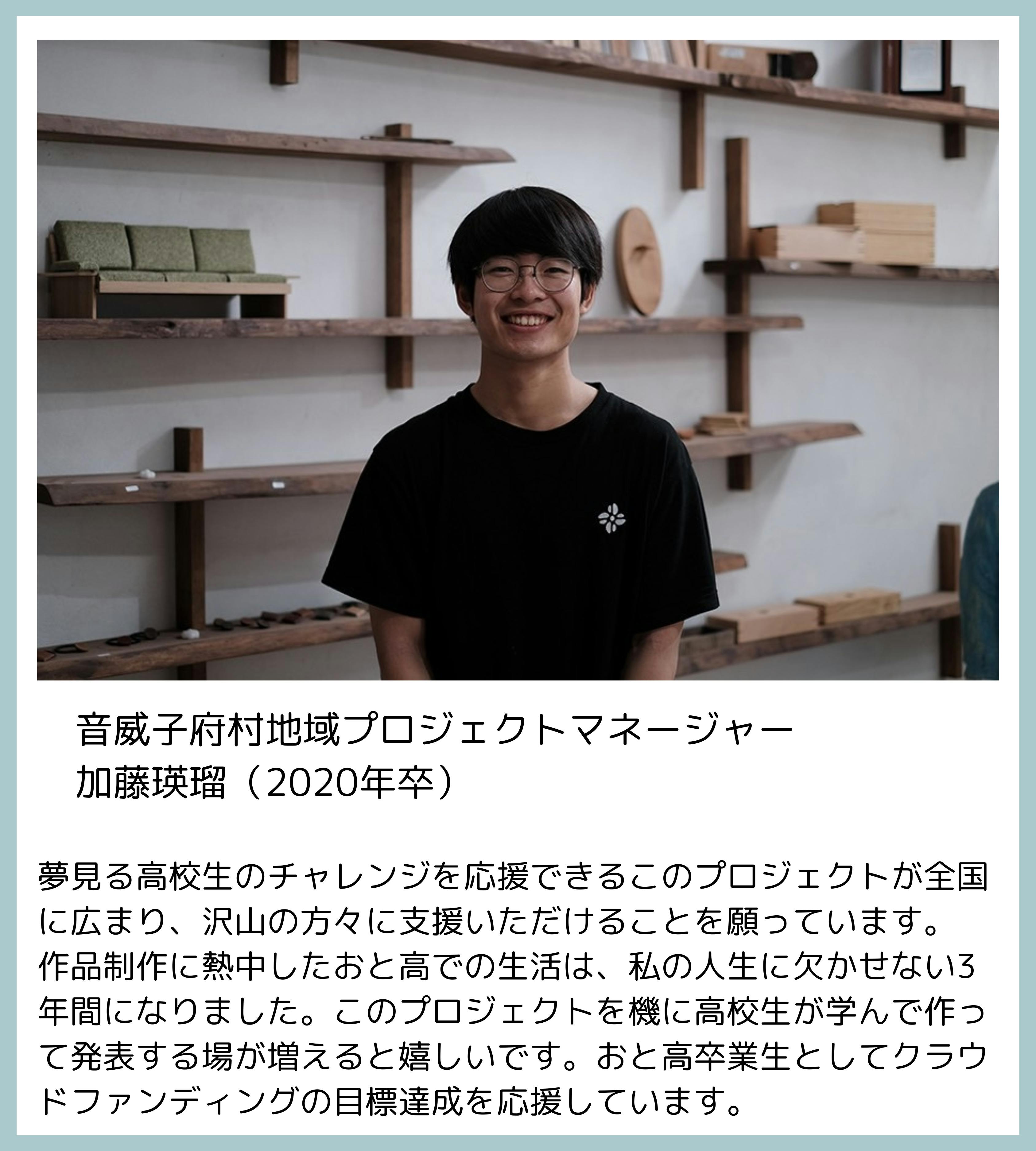 おと高卒業生の加藤瑛瑠さん、横内楓太さんの制作した商品をリターンに追加しました。