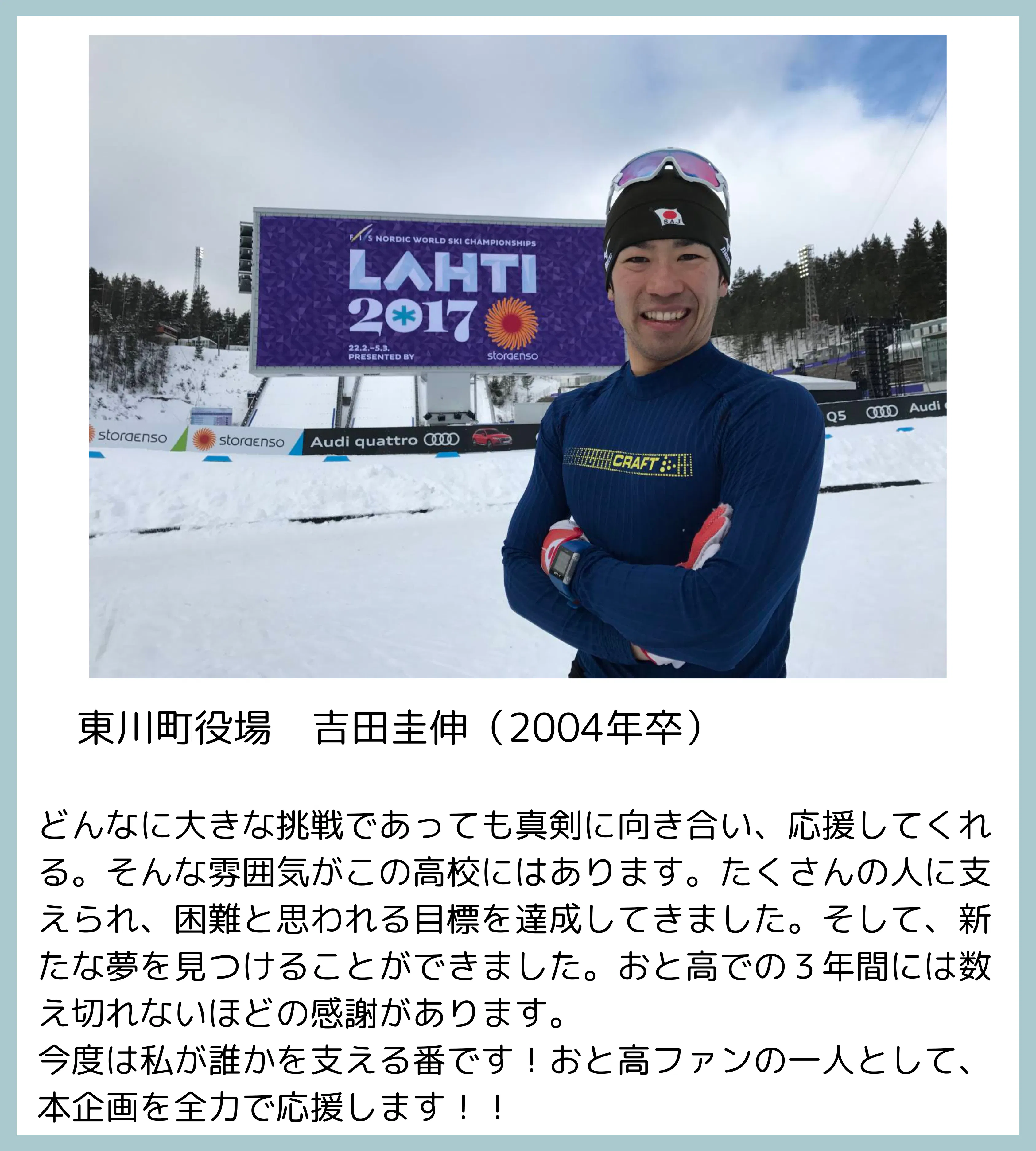 私は音威子府村出身で、高校もおといねっぷ美術工芸高校。高校時代は美術工芸よりもクロスカントリースキーに明け暮れ、日本一を目指していました。