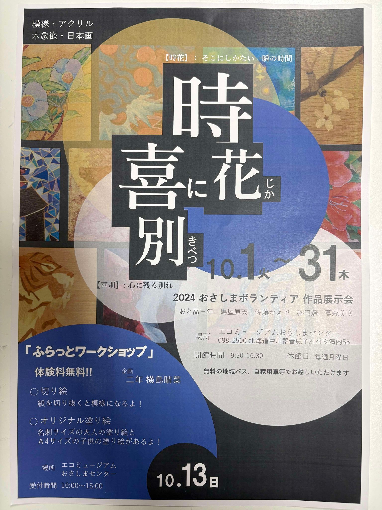 〇その他:10月1日~31日まで、エコミュージアムでは高校生の作品展示会を開催しています。