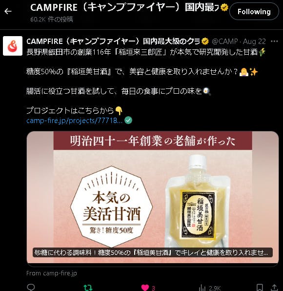 https://x.com/CAMPFIREjp/status/1826582589425041768