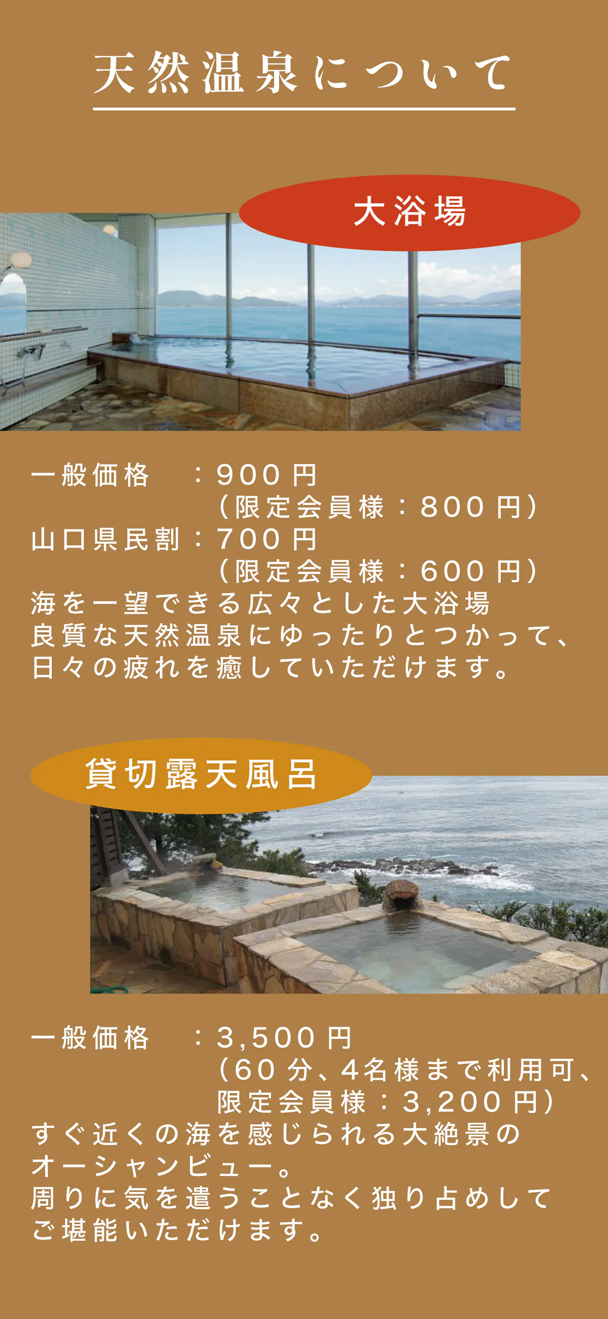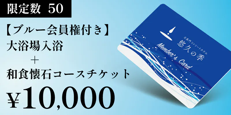 ※温泉がオープンするまでの間、宿泊の方に黄波戸温泉の利用券と、悠久の季の館内利用チケットを5,000円分お渡しいたします。