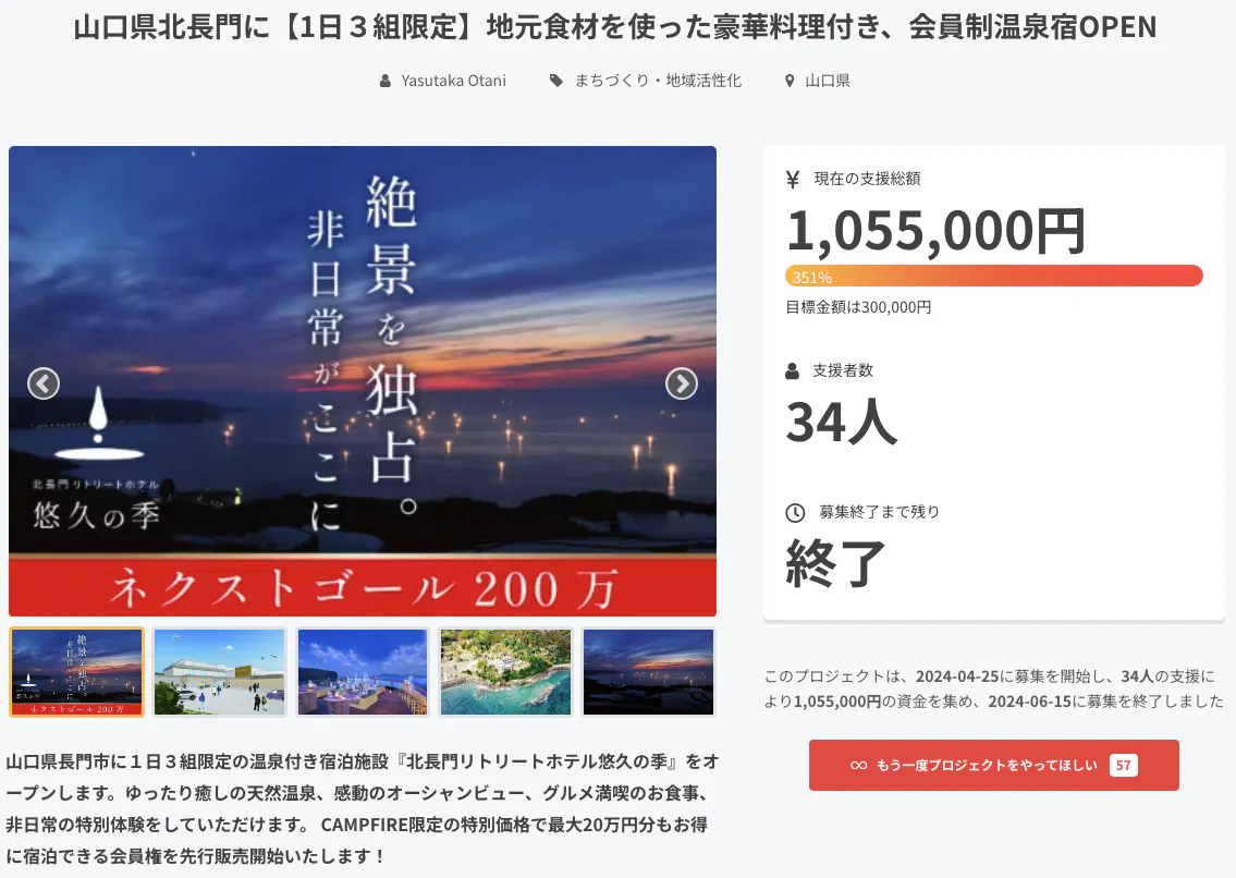 CAMPFIRE限定販売の会員様だけが宿泊できる施設となります。