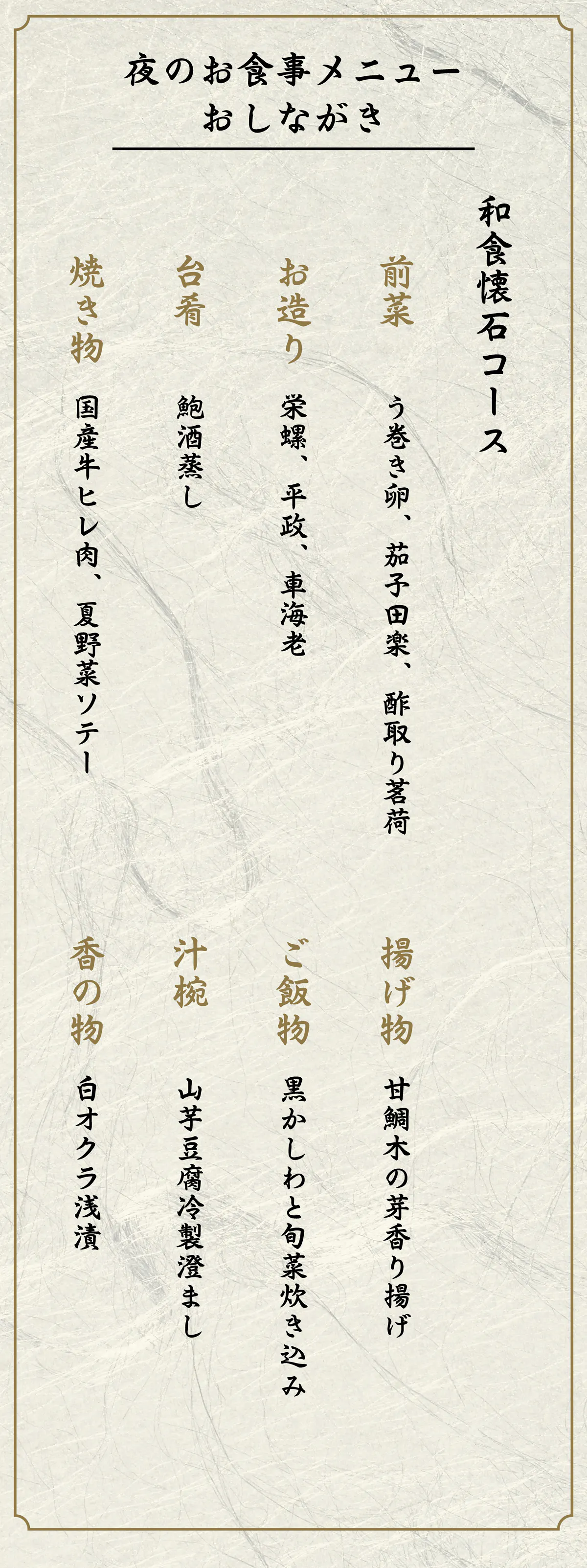 山口県ご当地の新鮮な魚介類を中心に良質な食材を豊富に生かした美味しいお料理でおもてなし致します。