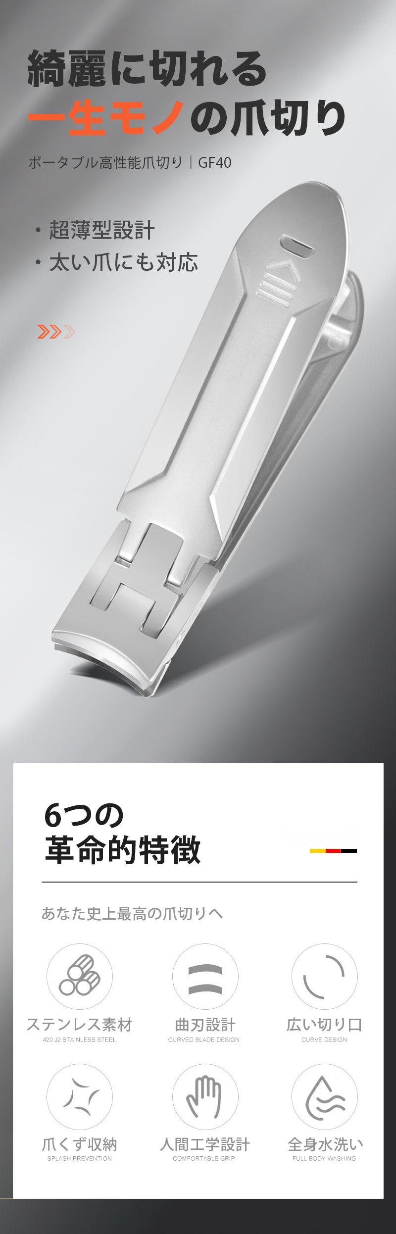 ポータブル高性能爪切り「GF40」があれば、様々な爪切りの悩みが解決します。