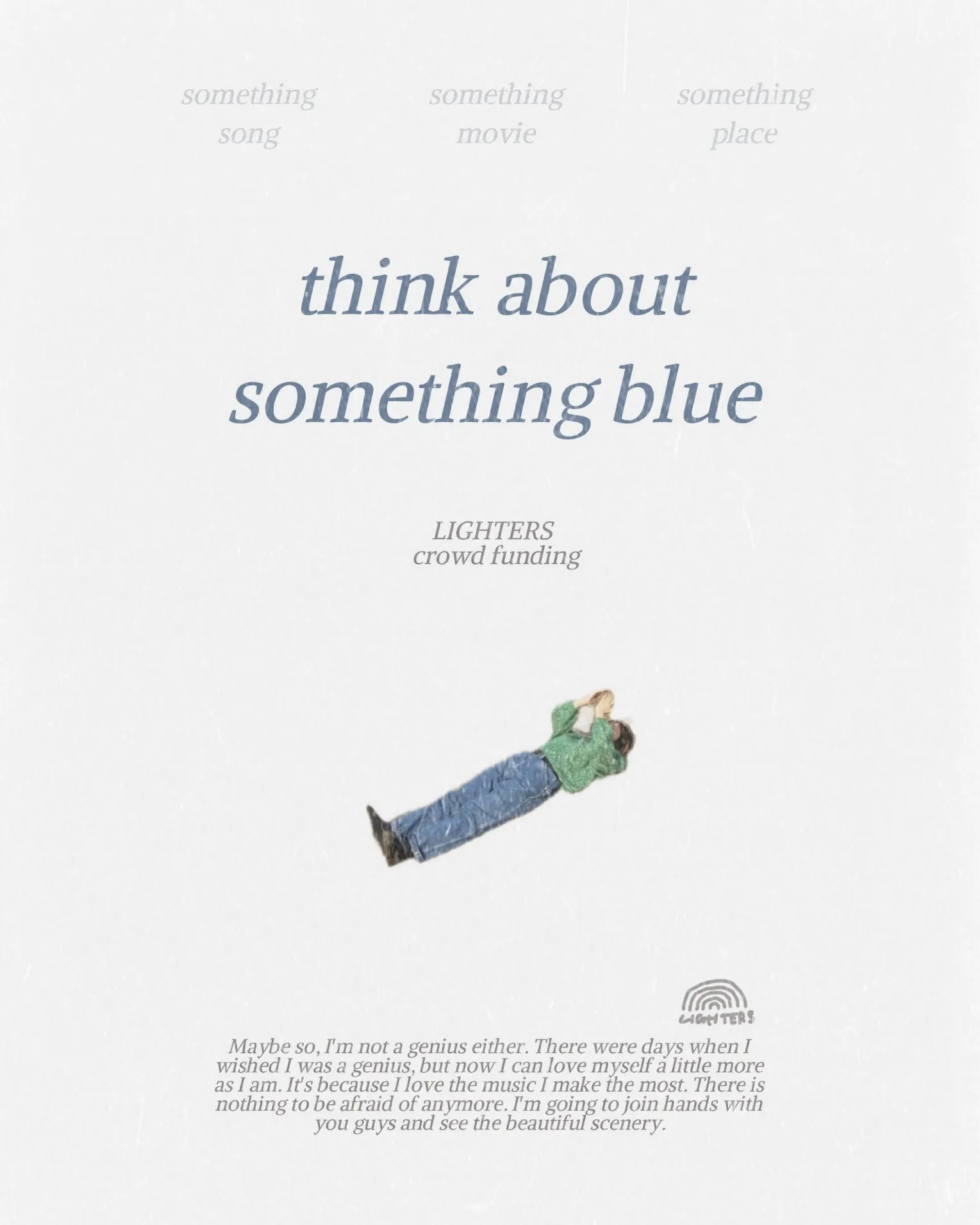 新たな気持ちでときめきを見つけながら音楽を作り続けていきたいという気持ちを込めて、1st singleのblueを引用して、このプロジェクトに"think about something blue"と名前をつけました。これからも音楽に胸が躍り、悩んだり期待をしながら日々を過ごせるように願いを込めて。