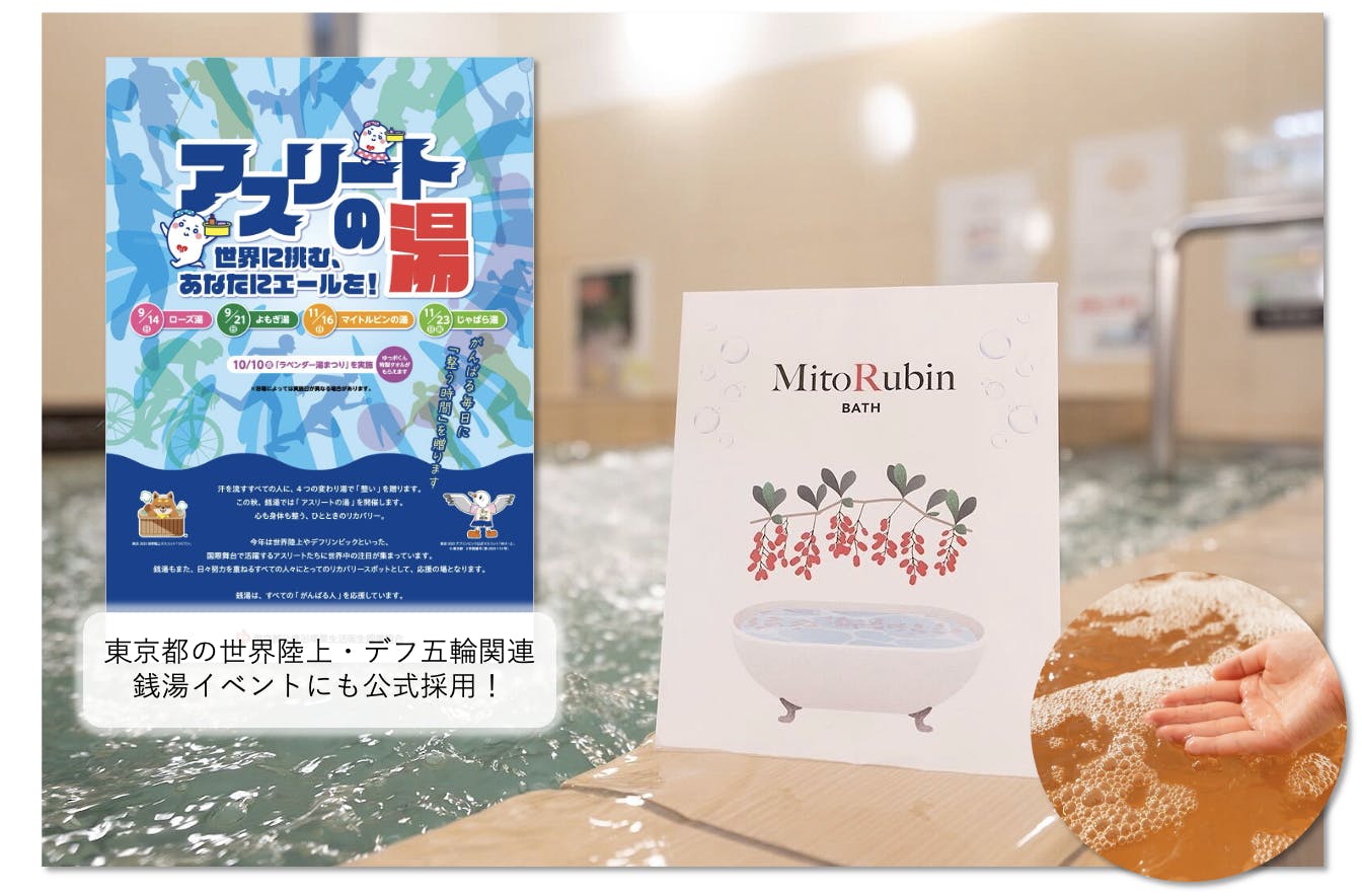 ラベンダーのやさしい香りと滑らかな湯ざわりが特長で、東京都主催の世界陸上・デフリンピック関連イベントでも公式採用された注目の入浴剤です。