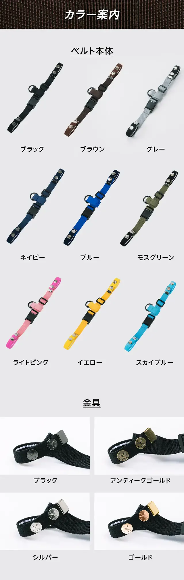 ・本体カラー (ブラック・ネイビー・ブラウン・モスグリーン・ブルー・イエロー・スカイブルーライトピンク・グレー)