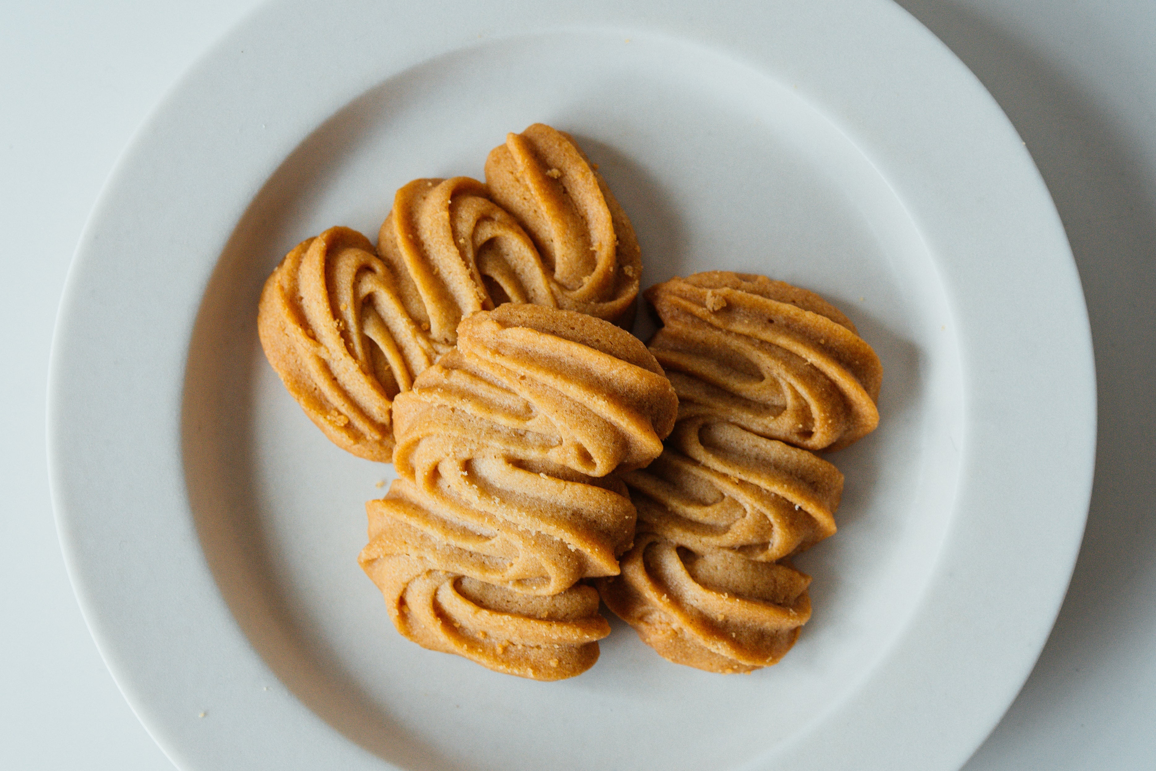 「真のシナモン」とも呼ばれるセイロンシナモンを味わうために作ったクッキーです。品物には2種類あり、木のようなスティック状の広く流通していて安価なものは「カシア」と呼ばれるセイロンシナモンの近縁種です。一方、セイロンシナモンは、スリランカで採られるものを指し、手で崩せるほど柔らかく、香りも、温かみのあるほのかな甘さと柑橘がかすかに漂う気品のある香りです。このセイロンシナモンの香りを最大限生かすよう配合し、歯触りが良くなるよう絞り出しの形で焼き上げました。