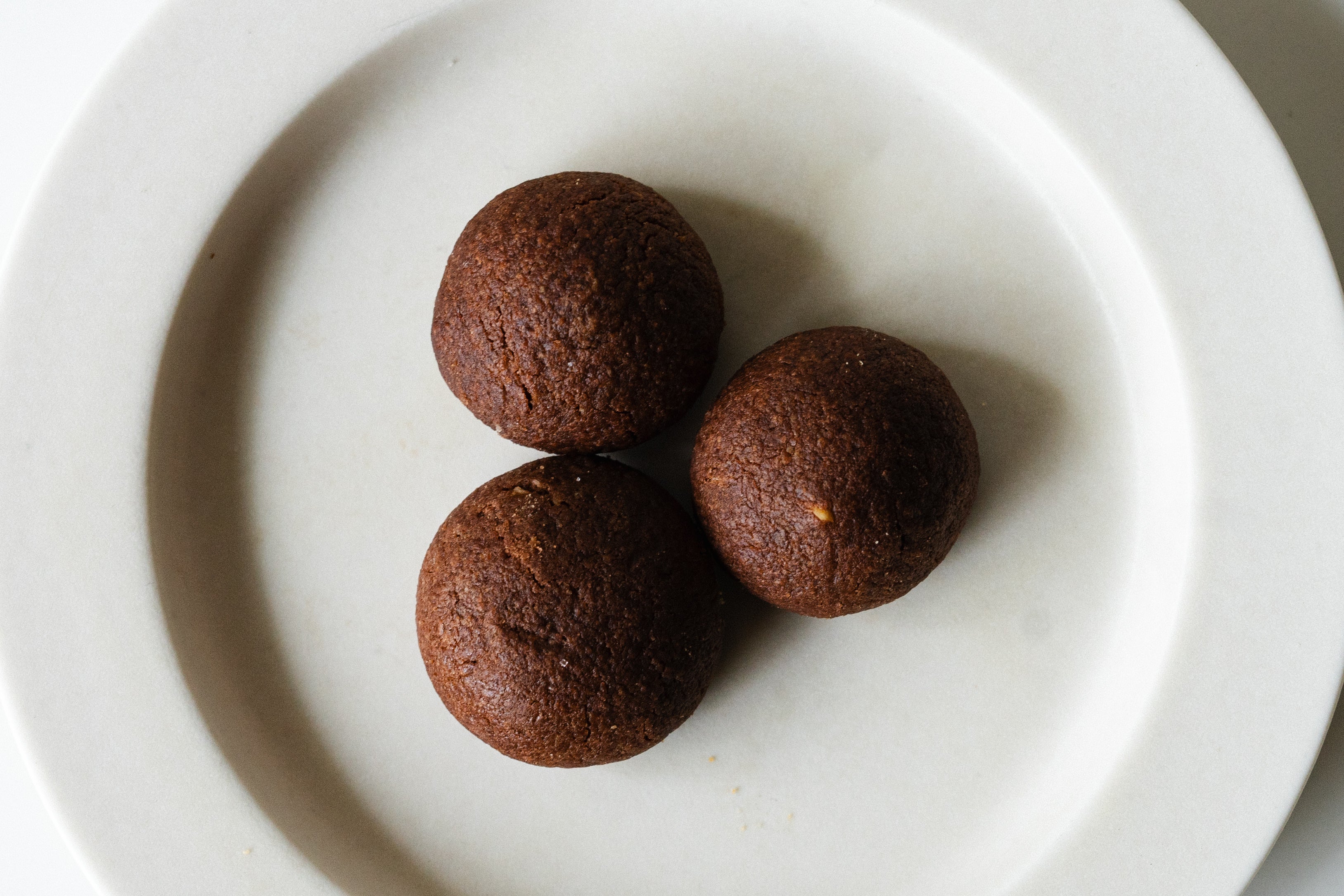 昔ながらの製法と、職人の確かな技術を生かして作られるフランス・ヴァローナ社のココアを使ったサクほろ食感にヘーゼルナッツがアクセントになったブールドネージュクッキーです。ココアのビターな味わいを生かして大人向けの味わいに仕上げています。ブールドネージュには、みんなが好きで、あるとつい買っちゃうような人が喜ぶクッキーというイメージがあり、また丸いフォルムの可愛さに惹かれて今回初めて作ってみました。