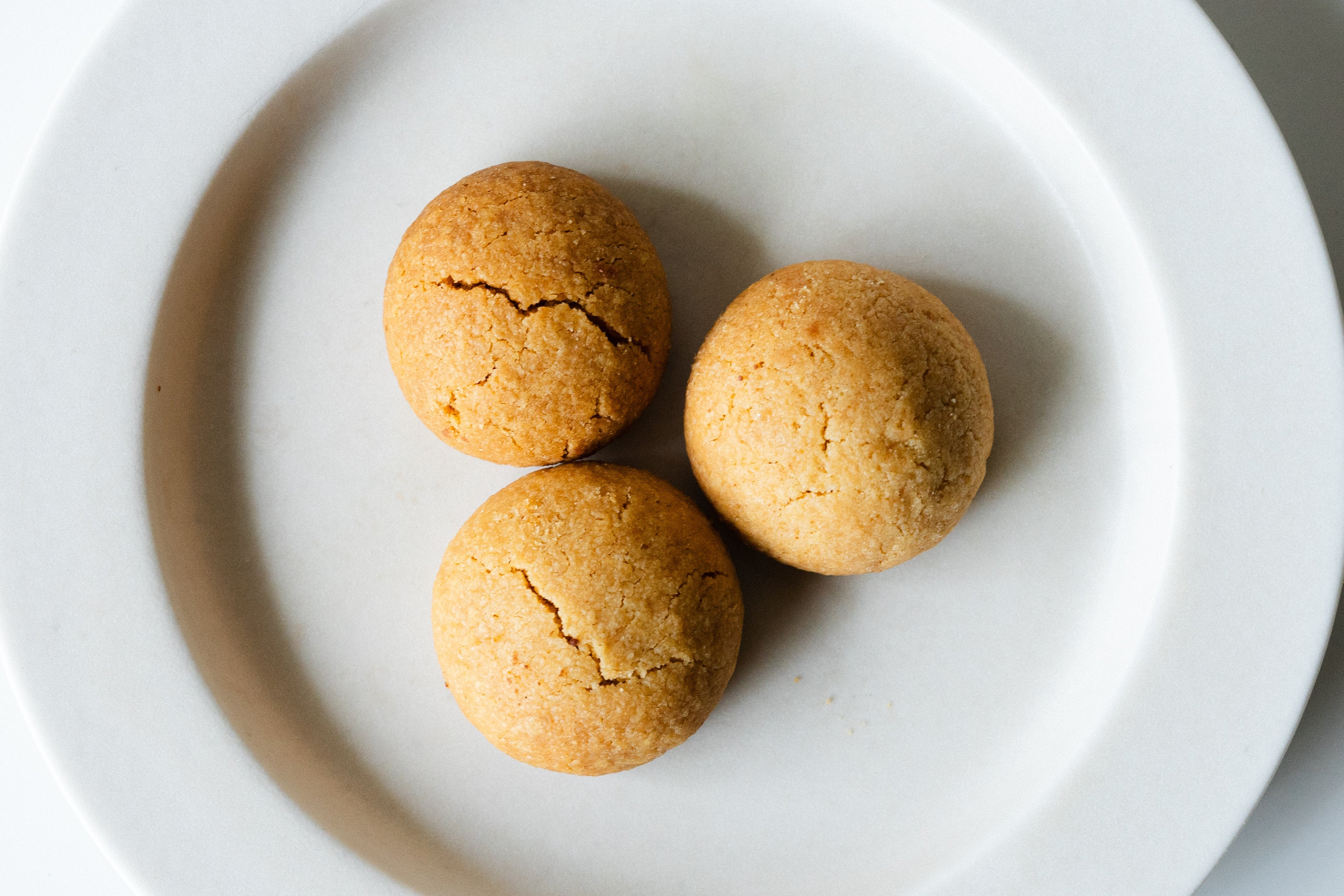 香ばしい焦がしきなこと発酵バターのコクを生かしたブールドネージュです。元々、きなこ好きだった菅野が温めていた「きな粉クッキー」アイデアをもとに、きな粉の香りや食感、風味がブールドネージュの生地と相性が良さそうだ、と、作ったクッキーです。OYATSUYA SUNでは初めてきなとなる、きな粉を使ったクッキーです。