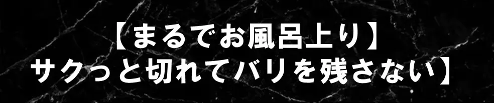 鋭い刃が断面を鏡面のようにシャープに仕上げます。サクっと切れるから、お風呂上りにケアしなくてもいつでも柔らかく切れます。ついつい後回しにしてしまう悪い癖もこれで解決できます。