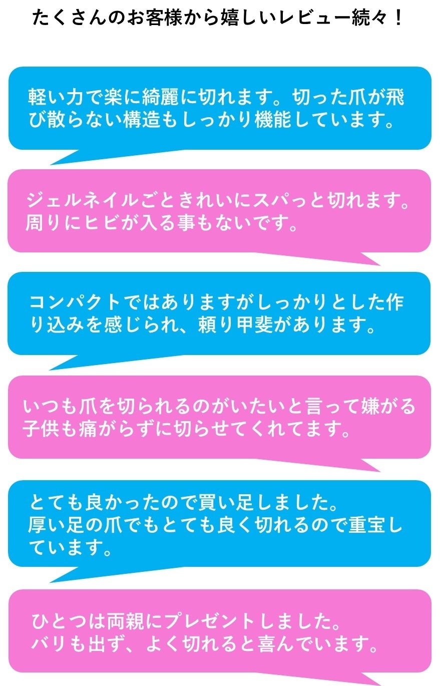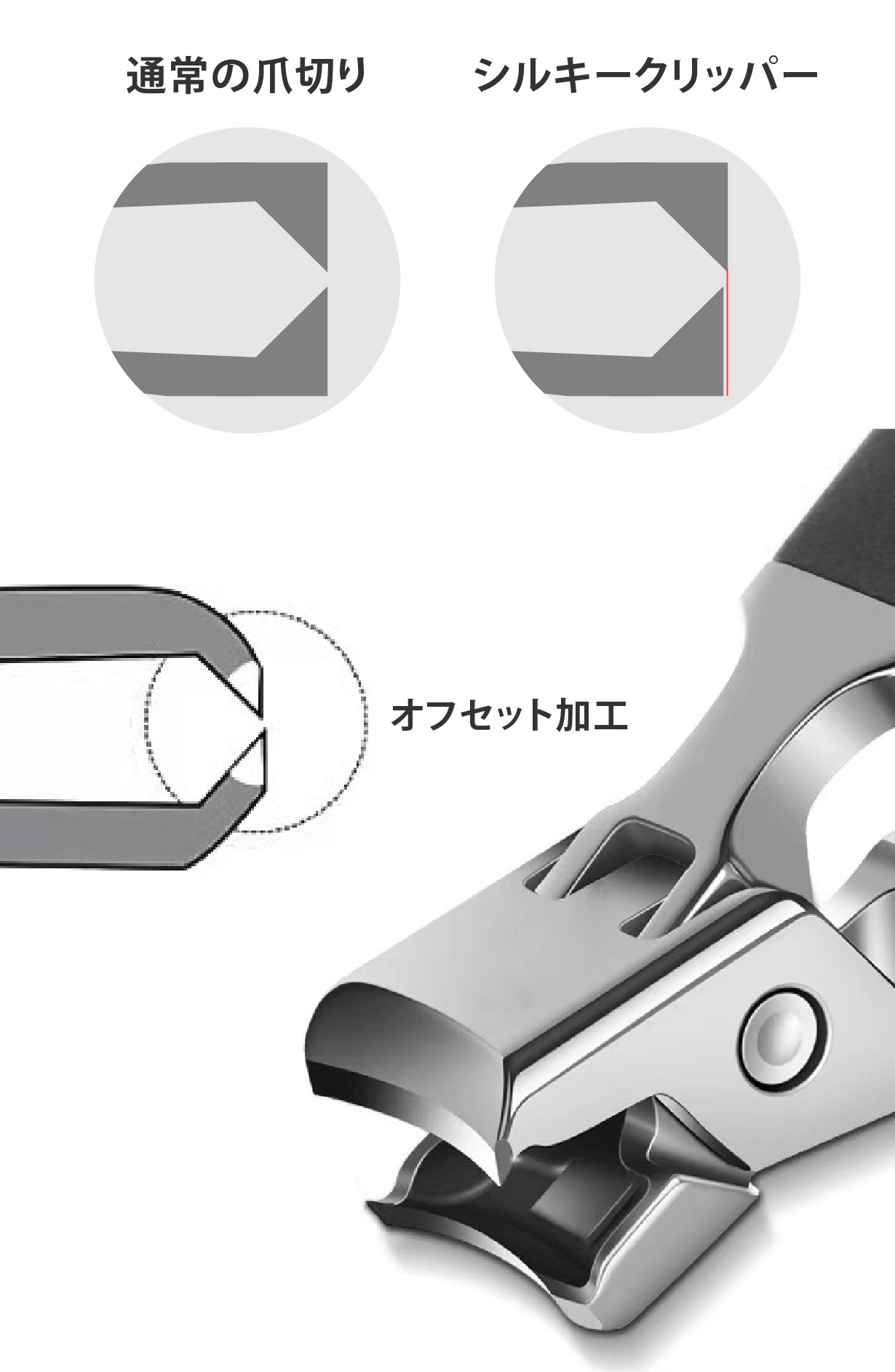 革新的なデザインと卓越した機能性により、通常の爪切りでは難しかったケアを可能にする新しい爪切りです。爪が飛び散ることなく、バリができにくく、分厚い爪でもサクッと切れるのが最大の特徴です。