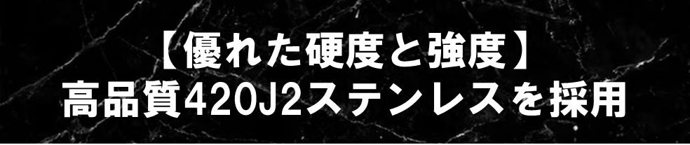 医療機器にも使用される高品質なSUS420J2を採用しています。このステンレスは炭素を多く含み、錆びにくく、長期間にわたって鋭い切れ味を保ちます。