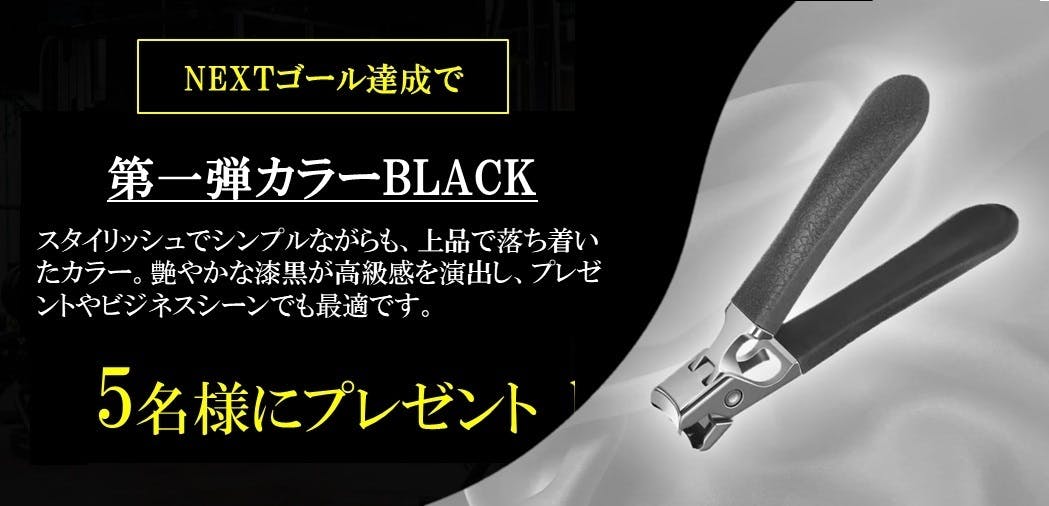 今回、次なるネクストゴールとして150万円を設定いたしました。次の目標に達成した際には、過去に大人気だった「ブラックカラー」を抽選で5名様にプレゼントいたします。