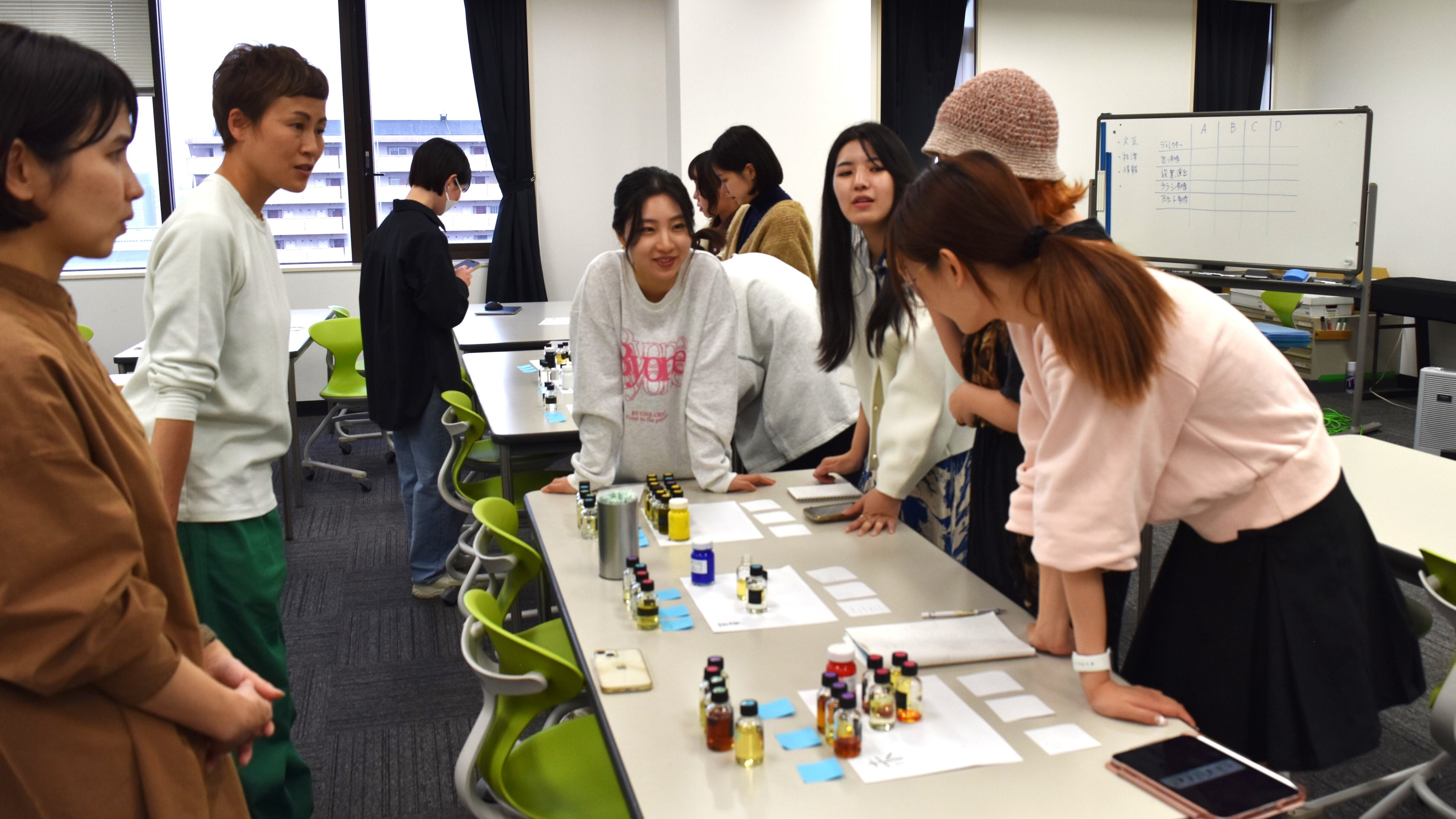 To bring this concept to life, a collaborative research initiative was established between @aroma Co., Ltd., Holbein Lab Inc., General Incorporated Association Kurashi Lamp, A Green Co., Ltd., and the Department of Cultural Design at Kindai University. Students from Kindai University actively participated in this initiative, working alongside professionals to design key elements such as fragrances, workshops, packaging, and crowdfunding campaigns.