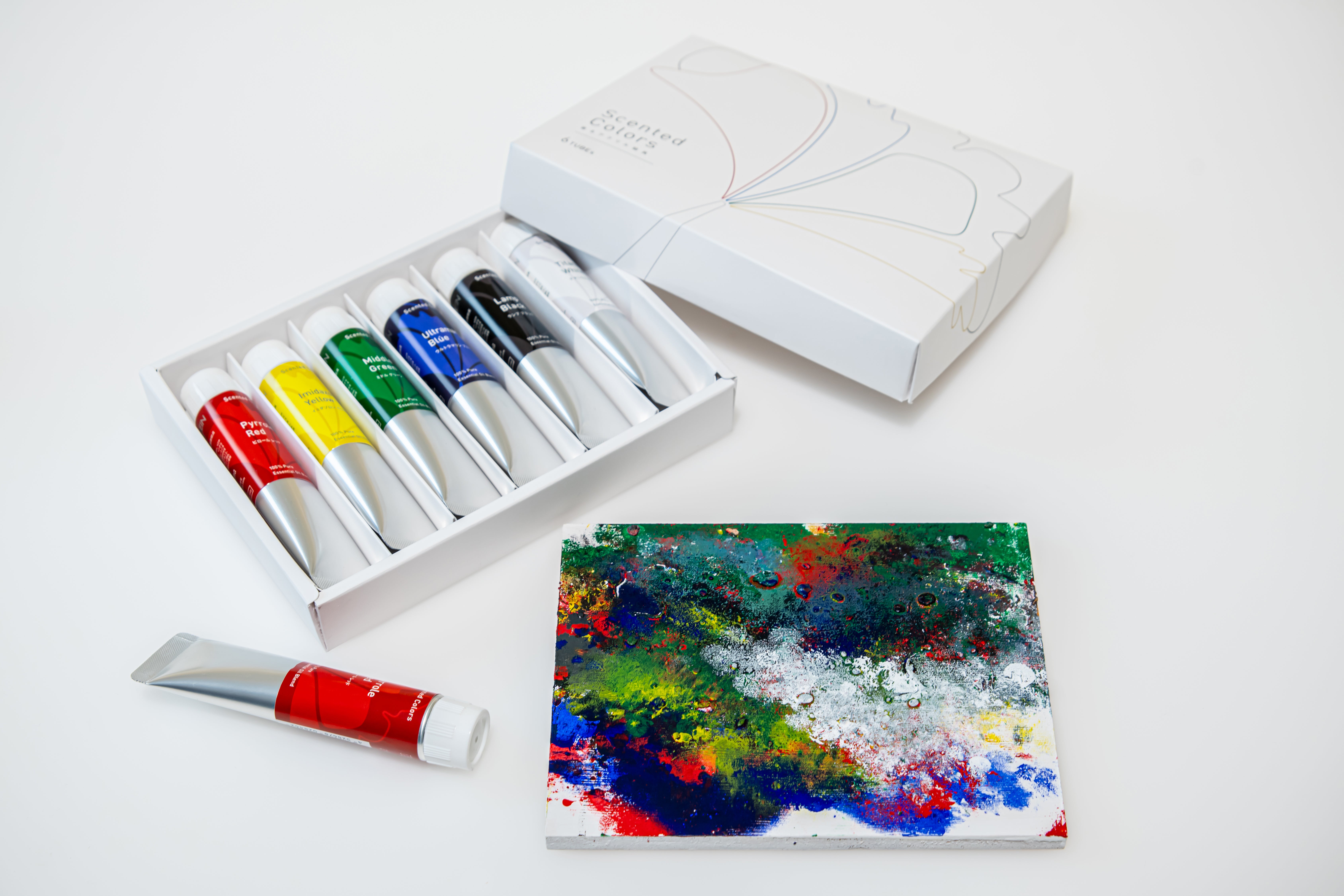 6種類の色と香りが楽しめ香るアクリル絵具。