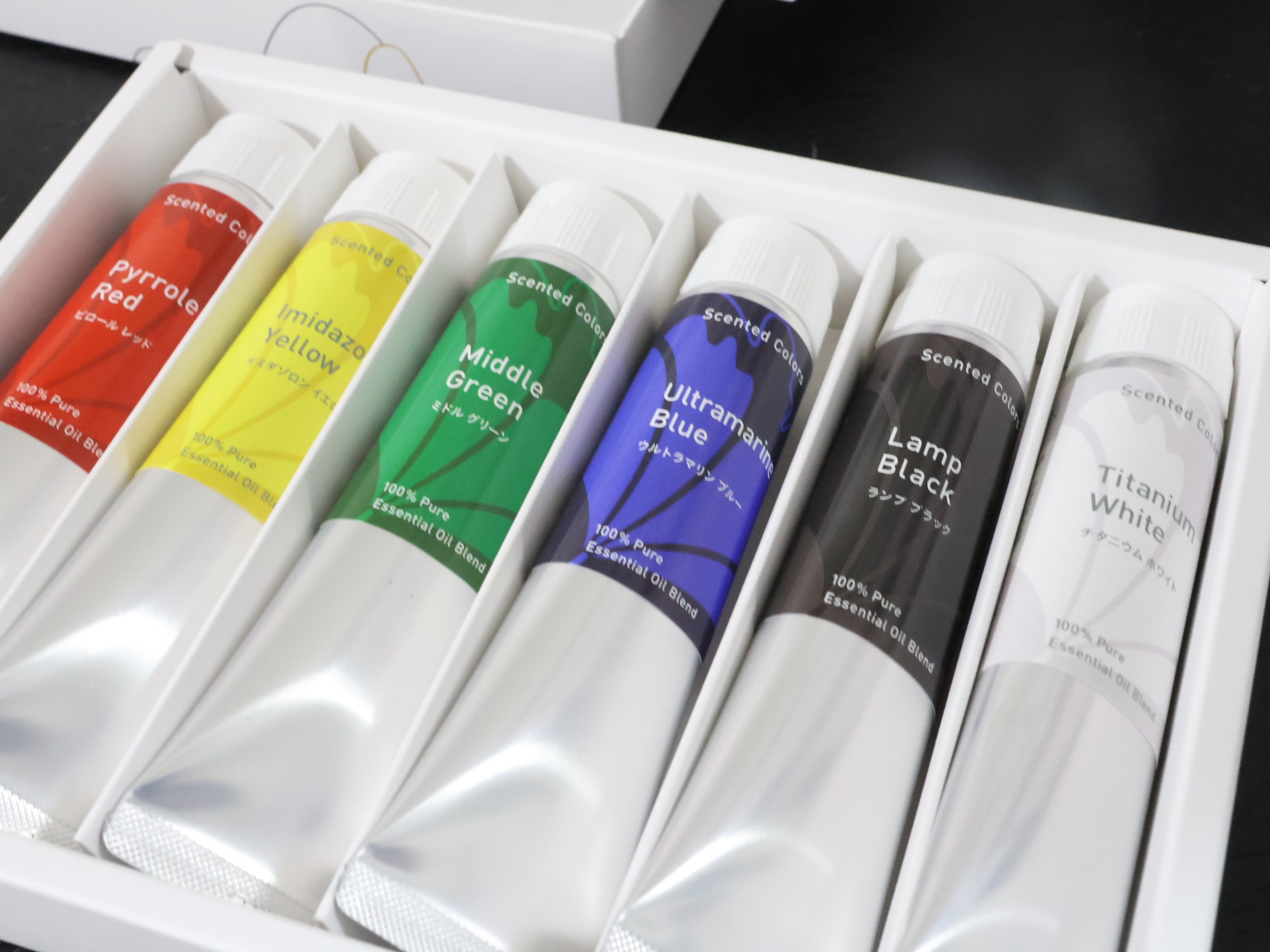 近況報告「Sceted Colors:香るアクリル絵具」プロジェクトをサポートいただき、誠にありがとうございます。先週、盲学校を訪問し、高校1年生の生徒さん1名と先生方に香るアクリル絵具を体験していただきました。以下に、いただいた貴重な感想の一部を共有させていただきます。生徒さんの感想「いつもは何を描いているのか考えなくてはならないんですが、匂いがずっと入ってくるので、自分が何を描いているのか気にしなくても自然と絵を感じ取れる感じがしました。ずっと芸術をしているようでした」「香りがなかったら『何か描いて』と言われても困るのですが、匂いを楽しもうと思ったら自然と手が動きました」「匂いを感じながら進めていくと、匂いのバランスを考えたり、『次はどの色を合わせたらどうなるのか』といった気持ちが強くなりました」「絵具を混ぜるだけでなく、香り同士が空間でどう混ざるかにも興味が湧きました」先生方の感想先生1: 「香りの効果がすごいので、リラックスしながら描けました。とても楽しい体験です」先生2: 「いい匂いのおかげで、絵を描くことへの抵抗感がなくなり、匂いからジャングルをイメージしながら描けました。香りが重なっても嫌な感じがしませんでした」先生3: 「匂いがあることで集中でき、余計なことを考えずに描けるように感じました」生徒さんからも先生方からも創造的なコメントをいただき、プロジェクトチーム一同、大変刺激を受けました。これらのフィードバックを今後の活動に活かしていきたいと思います。クリスマスをテーマにした絵も描いていただきました。お忙しい中ご協力いただいた皆さまに、この場を借りて心より感謝申し上げます。来年2月には、盲学校の小中学生の皆さんに参加いただくワークショップを計画しています。どのような発見があるか、プロジェクトチーム一同楽しみにしています。引き続き、「香るアクリル絵具プロジェクト」をどうぞよろしくお願いいたします。どうぞ良い年の瀬をお過ごしください!Activity Report (December 15, 2024): A Workshop at a School for the Visually ImpairedThank you for supporting the "Scented Acrylic Paint" project!Last week, we visited a school for the visually impaired, where a first-year high school student and their teachers had the opportunity to experience using the scented acrylic paints. Below are some of the valuable impressions they shared with us:Student’s Impressions"Usually, I have to think about what I’m drawing, but since I could continuously smell it, I felt like I didn’t need to focus on that and could naturally sense the picture I was creating. It felt like I was constantly immersed in art.""If there were no scent, I would be at a loss if someone suddenly told me to draw something. But when I thought about enjoying the scent, my hands started moving naturally.""As I worked while sensing the scents, I started thinking about the balance of the smells and felt a growing curiosity about what would happen if I combined certain colors next.""Beyond mixing the paints, I also became curious about how the scents themselves would blend in the air."Teachers’ ImpressionsTeacher 1: "The effects of the scents are amazing; I was able to draw in a relaxed state. It was a really enjoyable experience."Teacher 2: "Thanks to the pleasant scents, there was no discomfort in drawing. I could imagine a jungle through the scents as I painted. Even as the scents overlapped, they never became unpleasant."Teacher 3: "With the scents, I felt I could concentrate better and avoid unnecessary thoughts, like worrying about not being skilled enough."We received creative and valuable feedback from both the student and the teachers, which greatly inspired our project team. We hope to incorporate these insights into our future activities.The participants also created paintings themed around Christmas, which added a festive and creative touch to the experience.Looking ahead, we are planning a workshop in February next year, where elementary and junior high school students from the school for the visually impaired will gather. The project team is excited to discover new insights through this event.We would like to take this opportunity to express our heartfelt gratitude to everyone who helped us coordinate this event despite busy schedules.Thank you for your continued support of the "Scented Acrylic Paint" project.Wishing you a wonderful end to the year!Scented Colors Project Team@aroma Co., Ltd. HOLBEIN LAB, LTD.General Incorporated Association Kurashi LampA Green Co., Ltd.Kindai University