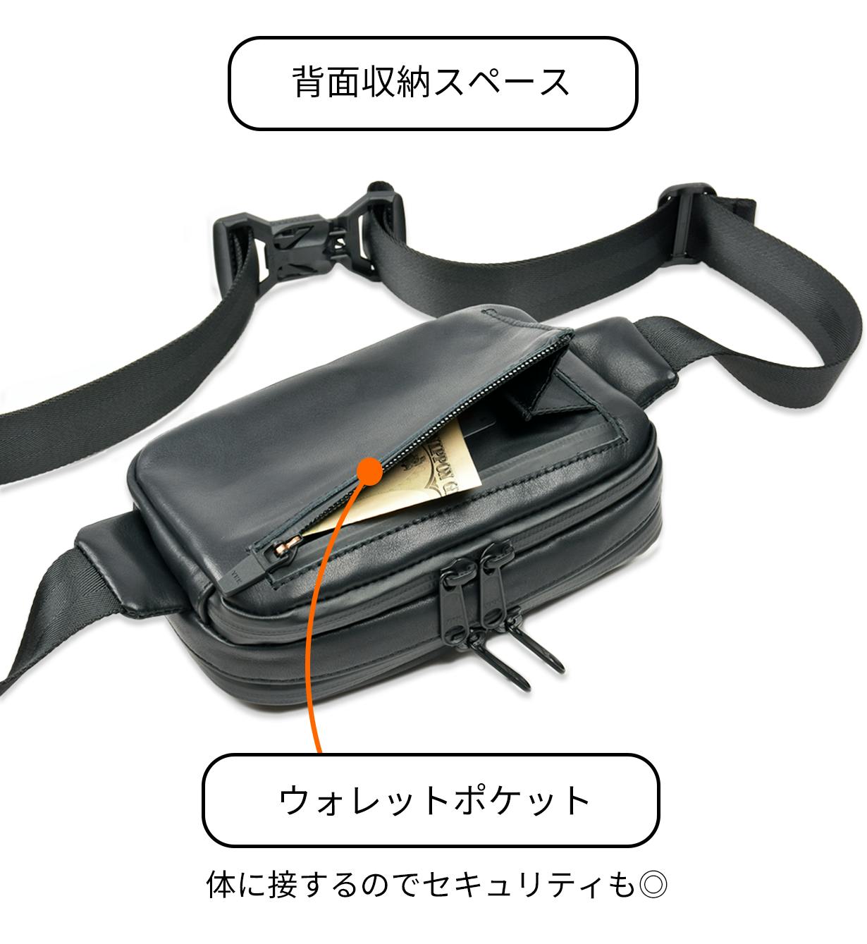 斜め掛けに特化し、さらに進化した防水本革ミニスリング。